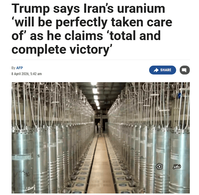 美国方面则始终坚持伊朗必须“完全放弃铀浓缩活动并交出所有核材料”。4月8日,美国总统特朗普在接受媒体采访时说,伊朗的浓缩铀库存将会得到“完美处理,否则不会接受停火”。