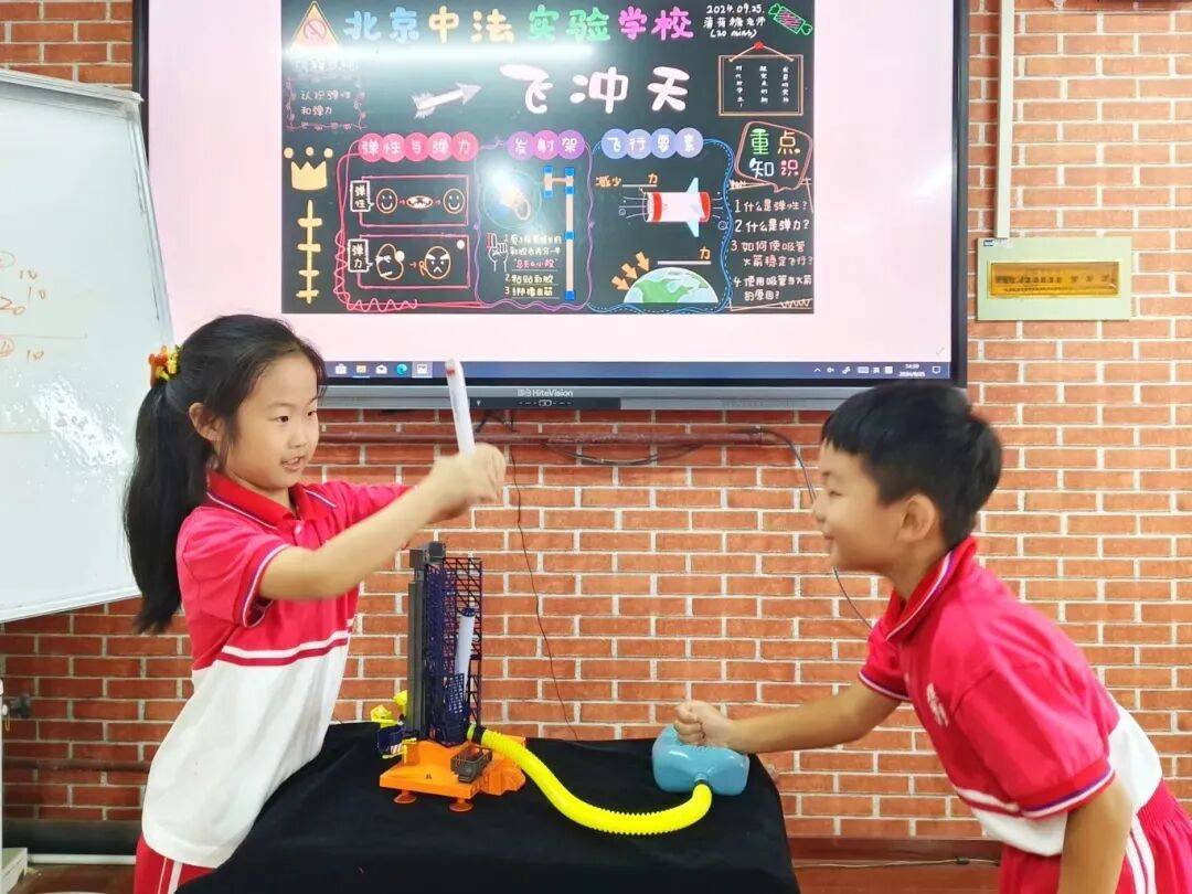 北京中法实验学校校长孙继刚介绍,学校通过重点项目推进科技教育,月月有主题,在校级科技节、数学节、物理节、化学节中,开展跨学科“做中学”实践活动。“科技教育方式包括讲授式、探究式、启发式、项目式、体验式、小组合作式、人工智能赋能教学。”