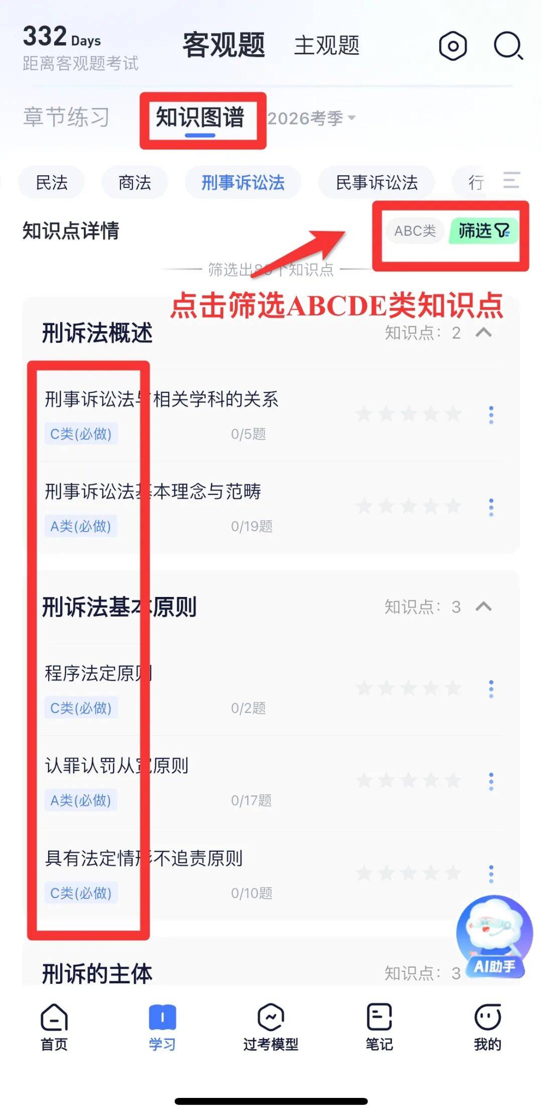 觉晓法考APP-知识图谱可以帮助考生检测自己的学习效果,起到查漏补缺的作用: