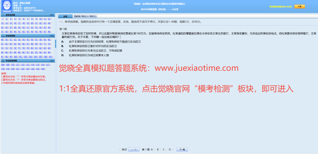 PS.觉晓网页端的模考基本还原了司法部的考试系统,建议每次模考都用电脑练习!(正式考试也是用电脑,提前适应,对你有好处!)