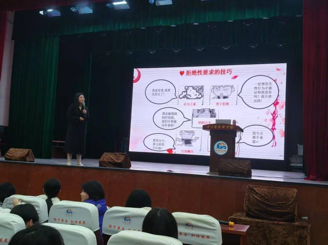 为引导校园女生正确对待、处理青春期生理、心理上的变化及由此带来的困惑、烦恼,提高全校女生的健康意识和自我保护能力,3月3日~18日期间,四川省南部中学在西区礼堂面向全校女生开展女生专题教育讲座,讲座由心理教师代梦、郭鑫、何丹主持开展。