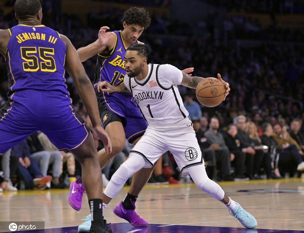易边再战,约翰逊连中两球,又是篮网率先发力。但很快,里夫斯外线造犯规罚球3中3,湖人继续维持微弱优势。此后,篮网还在凶猛反扑,扎伊尔-威廉姆斯三分入网,客队在本节打了三分半后,一度又把比分反超了。詹姆斯里突外投连中两球,又为湖人止血。可拉塞尔在旧主面前也是毫不留情,他再中三分球个人得分已经上双了。进入三节末段,双方比分依然紧咬,随着文森特造犯规罚球2中1,三节打完,湖人72-68继续领先。