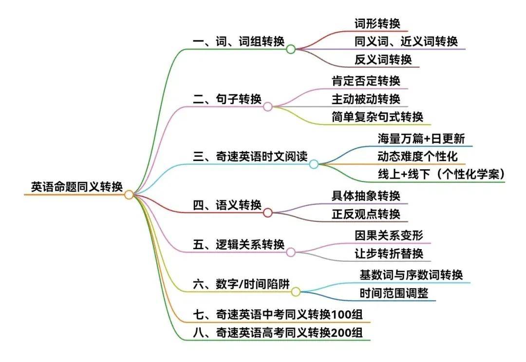 单词是英语学习的基石,但记忆单词往往让学生感到枯燥无味。蔡章兵老师创新性地提出了思维导图故事记单词法,将三年的单词量通过思维导图的形式串联起来,形成一个个生动有趣的故事。奇速英语的思维导图故事记单词法,是一种创新的单词记忆模式。小学800词汇、初中1800单词,高中3500单词,甚至考研英语都可以通过90张200张或400多张思维导图故事快速掌握。这种方法打破了孤立记忆单词的困境,通过故事串联单词群,结合英语单词的音形义规律,使记忆更加高效和牢固。结合实践应用,如游戏闯关,进一步提升综合语言能力。通过7天集中突破,学生就能轻松掌握大量单词,为后续的英语学习打下坚实的基础。