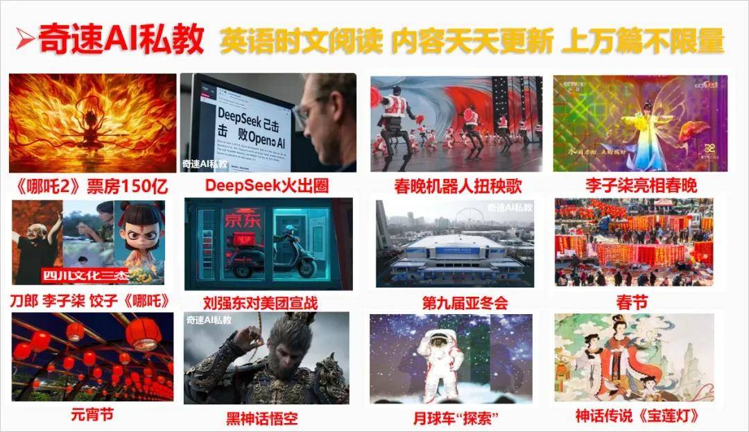 阅读是英语学习中不可或缺的一部分,它不仅能够拓宽学生的视野,还能提高他们的语言理解能力和词汇量。蔡章兵老师推荐的奇速英语个性化时文阅读,根据学生的兴趣和英语水平定制阅读内容,确保每位学生都能在阅读中找到乐趣和收获。同时,时文阅读紧跟时代潮流,让学生在学习英语的同时了解世界最新动态,培养国际视野。