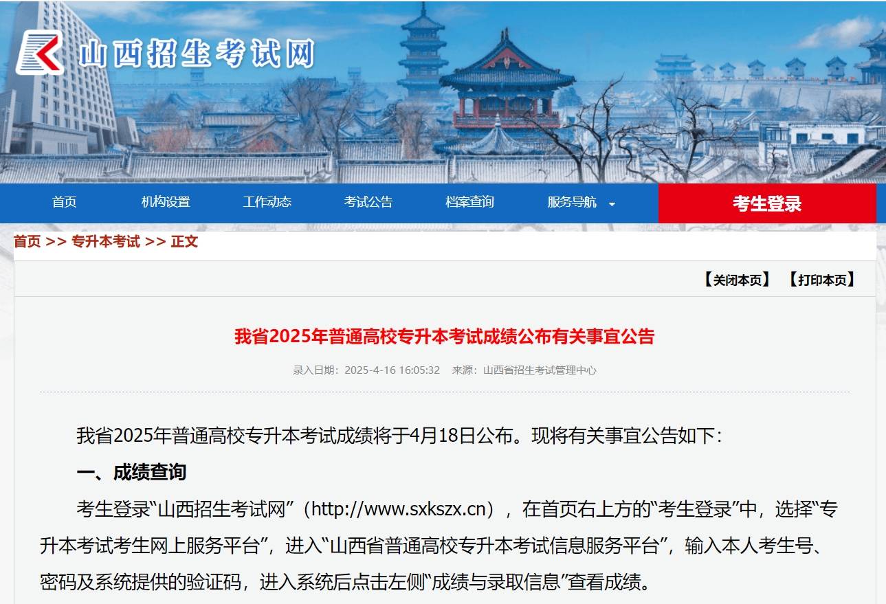 山西省2025年普通高校专升本考试已经圆满结束,考生们翘首以盼的成绩即将揭晓。据山西铭典函授站最新消息,山西省2025年普通高校专升本考试成绩将于4月18日正式公布。为确保考生能够及时、准确地查询到自己的成绩,现将有关事宜公告如下: