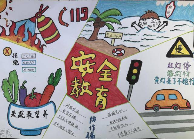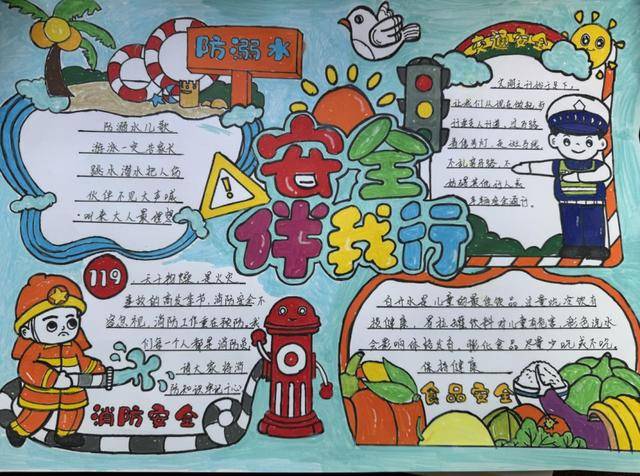 作为安全教育日系列活动的重要环节,学校此前组织开展了以“防溺水、交通安全、消防安全、食品安全等”为主题的校园手抄报比赛。同学们积极参与,创作出一批图文并茂、创意十足的作品。通过手抄报创作,学生们不仅巩固了安全知识,更以艺术形式传递了“珍爱生命、安全第一”的理念。