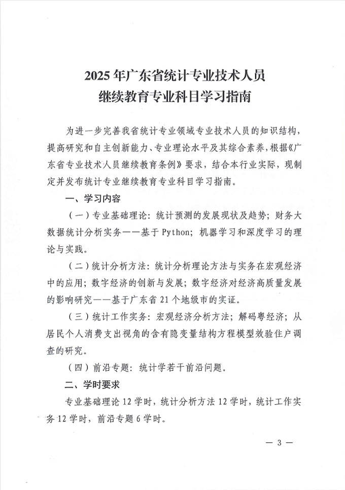 广东省统计局关于发布2025年统计专业技术人员继续教育专业科目学习指南的通知