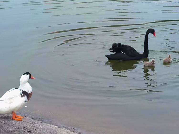 自黑天鹅夫妇顺利孵出鹅崽,毓秀湖接连上演这样的情节,小白鸭使尽浑身解数接近黑天鹅一家,与之相反的是,黑天鹅表现得疏离又骄傲。“扑簌扑簌”的振翅声渐消,那双橙红的掌蹼停下“思索”片刻,选择迂回,从侧方再次靠近黑天鹅。