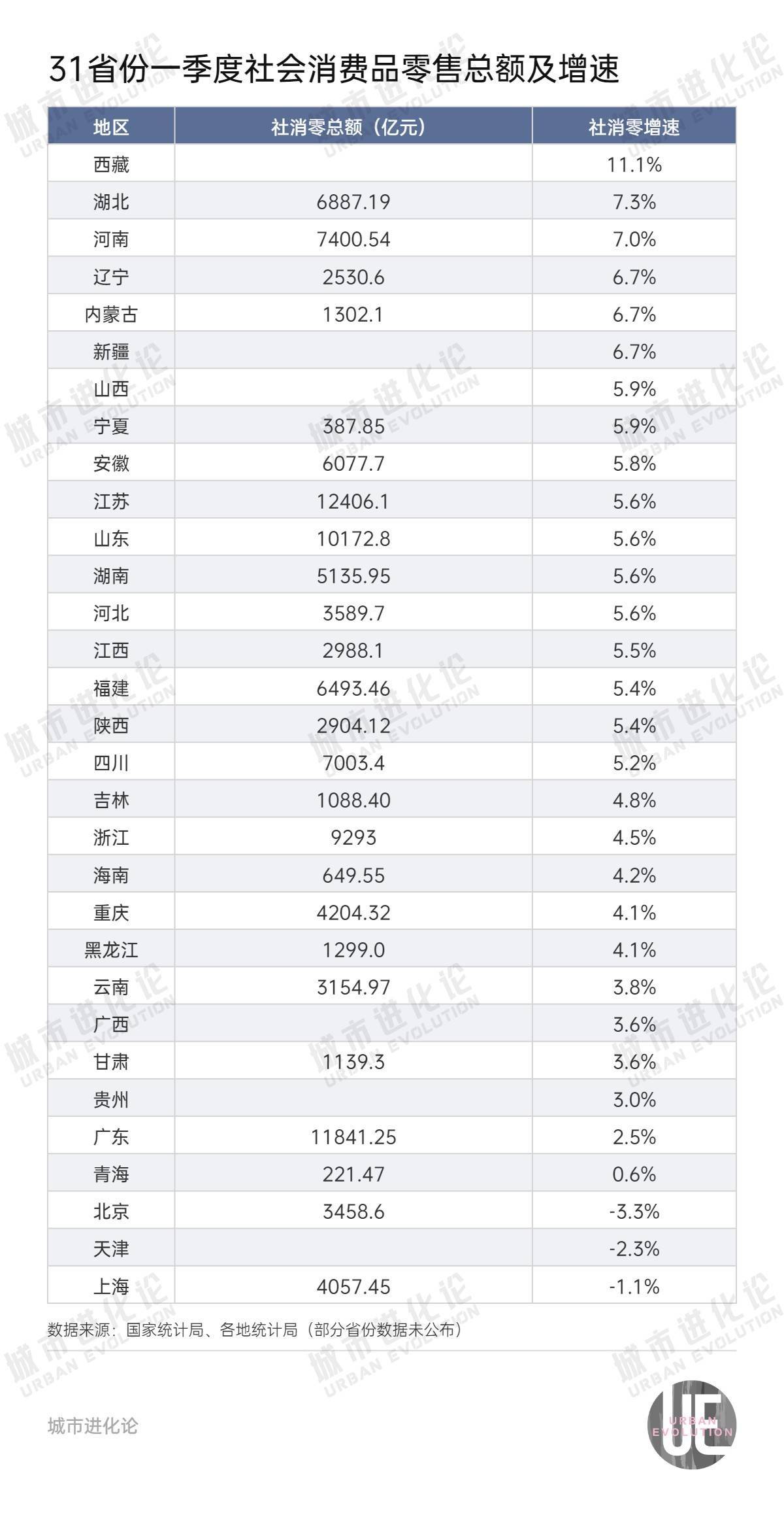 今年一季度,全国社会消费品零售总额达到124671亿元,同比增长4.6%。最终消费支出拉动GDP增长2.8个百分点,贡献了一半以上的经济增长。具体到各省份,今年消费表现如何?
