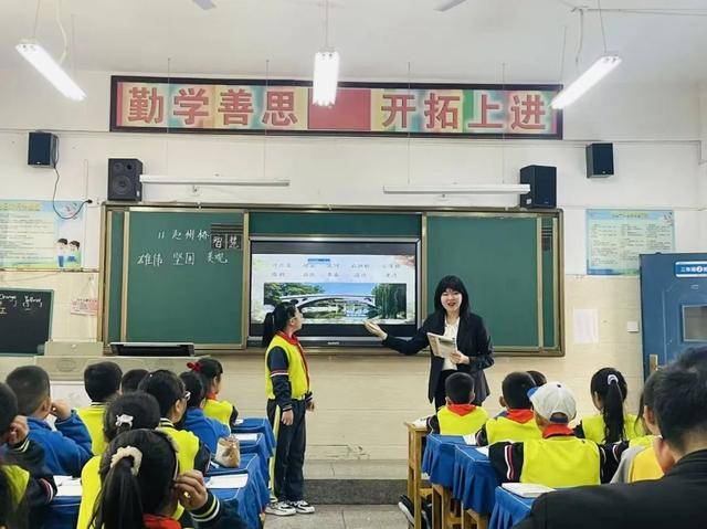 嵇久玉老师用大量精美的图片和视频,带领学生 “走进” 这座千年古桥。课堂上,嵇老师通过提问引导和小组讨论,带着学生分析文章结构,学习列数字、打比方等说明方法。在轻松活跃的氛围中,学生不仅掌握了语文知识,更对古代建筑产生了浓厚兴趣,领略到古人建造技艺的智慧与匠心。