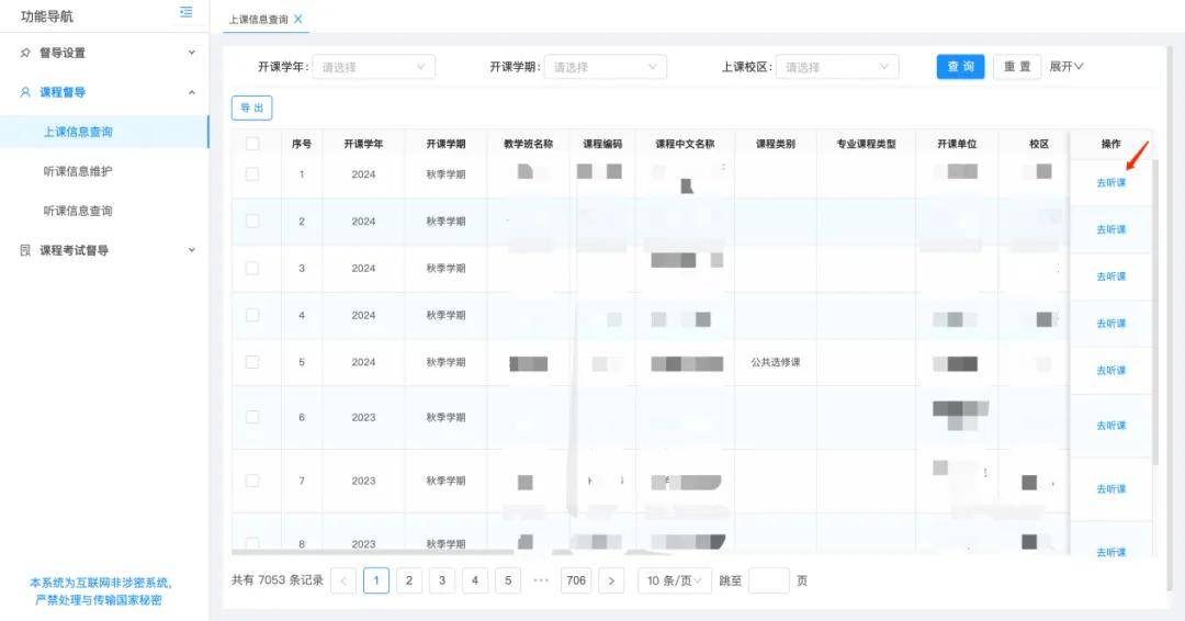除了课程管理外,本研一体化系统还扩展了针对研究生课程的综合管理功能。在实现本研课程资源共享的基础上,进一步增强了系统的实用性,增加考勤管理、学生评教管理、开课管理、工作量管理以及督导管理等多项功能,全面满足院系和研究生院的管理需求,提升教育管理的精细化水平,为学生的全面发展提供了有力保障。