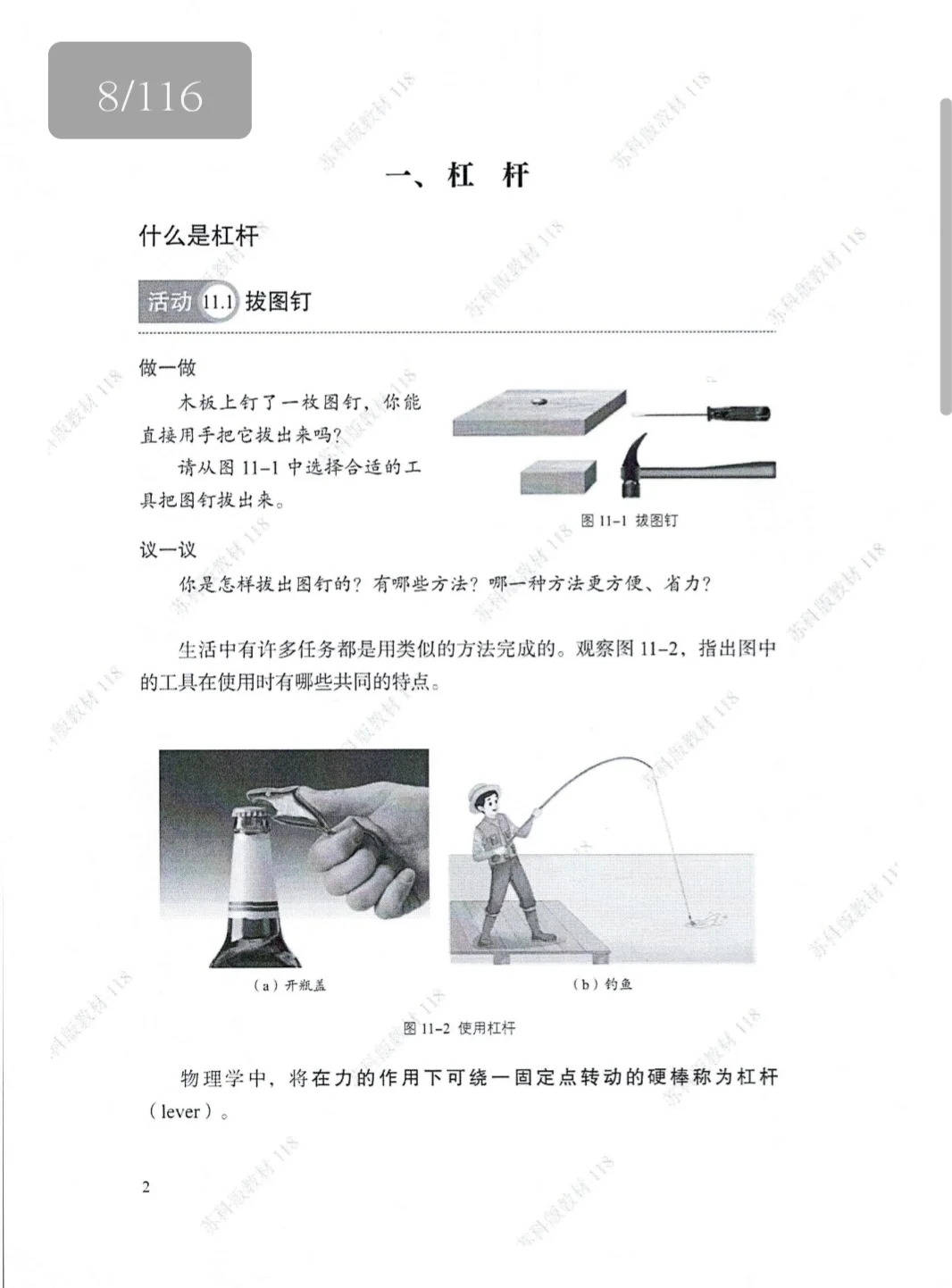 今天为大家分享:2025秋季新版苏科版初中物理九年级上册新版电子课本,从基础概念到原理应用,循序渐进引导学生学习,帮助学生构建完整物理知识框架,为后续学习和中考备考筑牢基础。在能力培养方面,丰富的实验探究内容,如探究杠杆平衡条件,培养学生观察、实验操作、数据处理和分析归纳能力,提升科学探究素养。大量生活实例分析,像生活中的剪刀、各种杠杆工具应用等,锻炼学生将物理知识与实际生活联系的能力,提高知识运用和解决实际问题的能力。