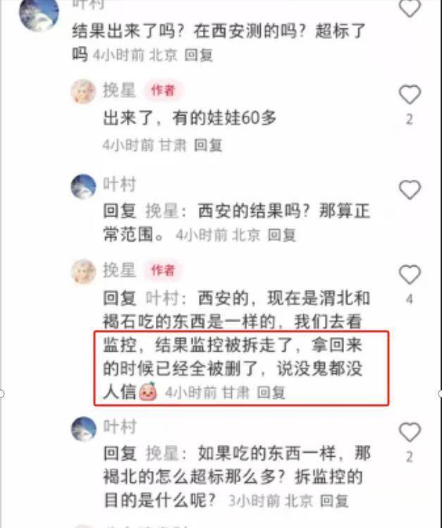 虽然孩子有些许症状,但不确定就是铅中毒造成的,这位家长已经连夜带着孩子去了西安检查,结果马上就能拿到。