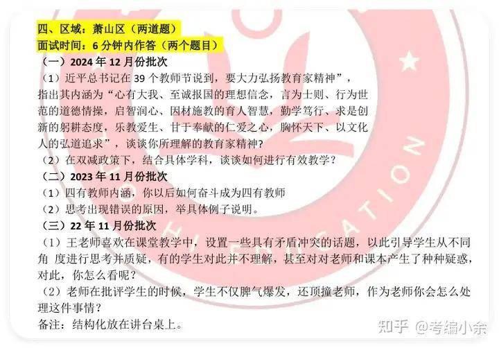 杭州萧山区提前批结构化2道题目6分钟作答 占比60%