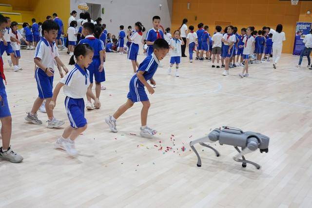科技元素成为多校开学亮点,助力学生感受创新魅力。香港中文大学(深圳)附属彩田学校邀请宇树科技Unitree G1人形机器人表演兔子舞,与管乐团共同迎新。南山实验教育集团明远学校则以机器人、机器狗迎宾,体育馆内设置无人机操控、AI绘画等体验项目,让新生沉浸式感受科技魅力。