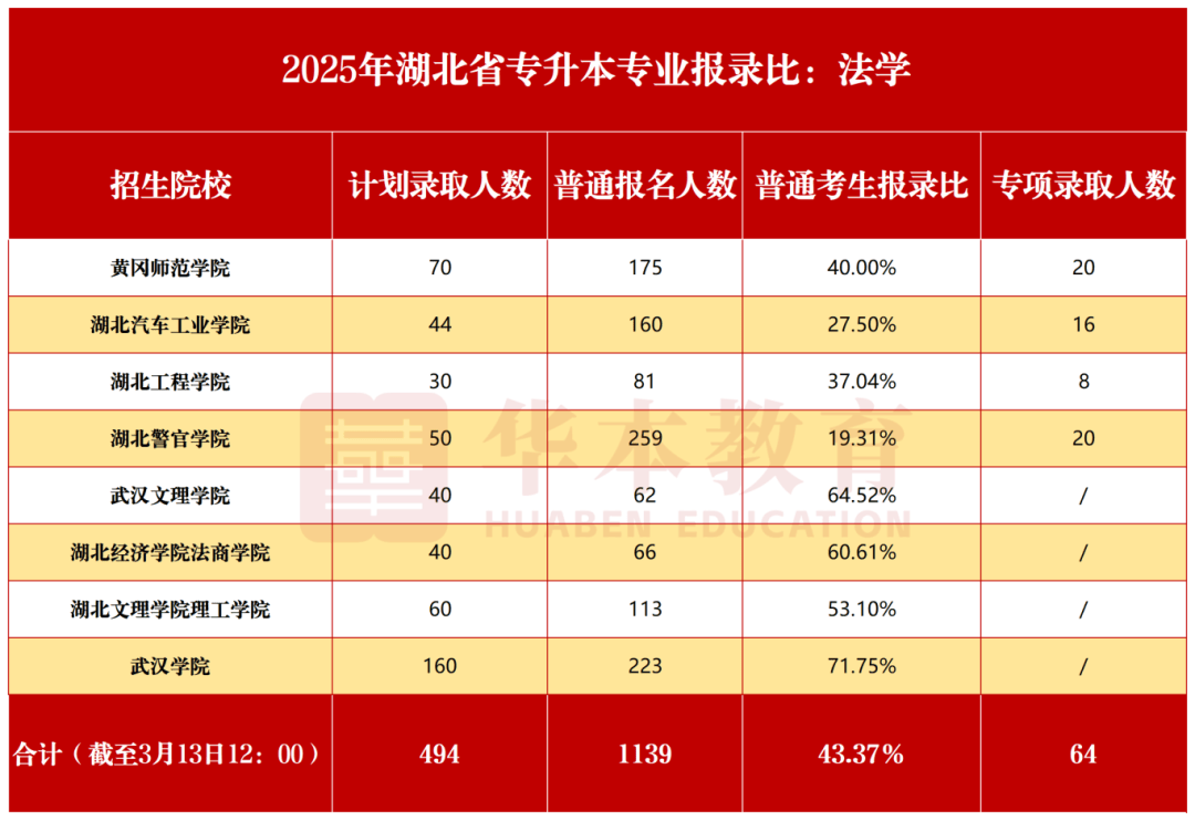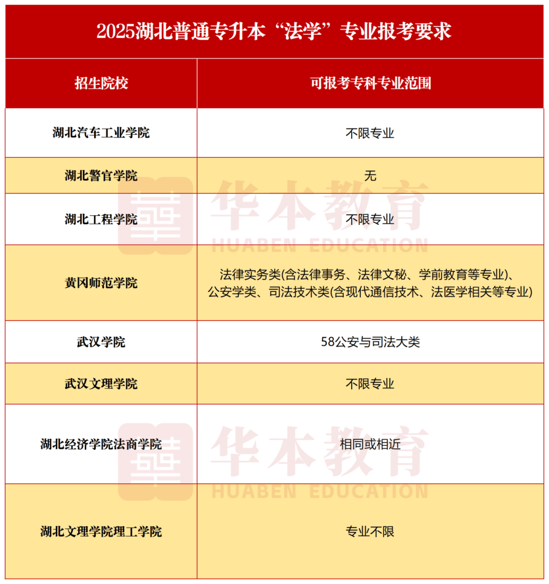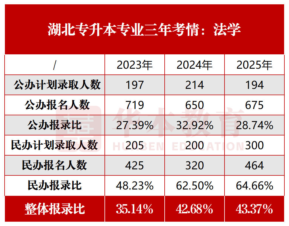 2025年湖北普通专升本招收法学专业的学校有8所,相比于2024年停招了1所