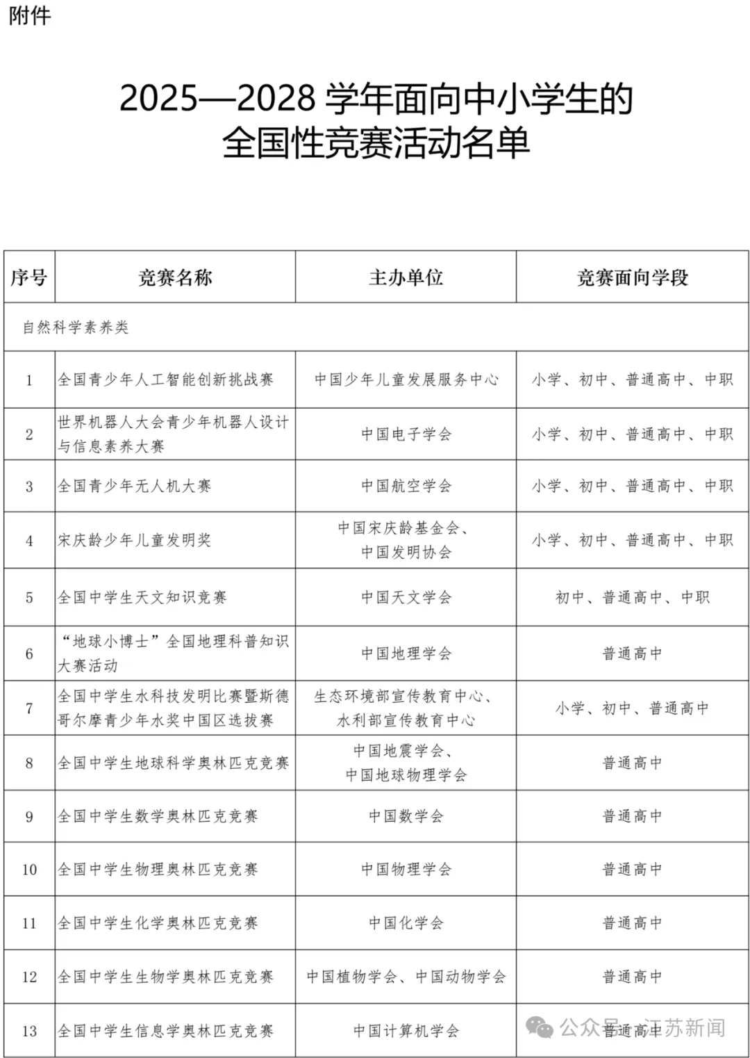 附件:2025—2028学年面向中小学生的全国性竞赛活动名单