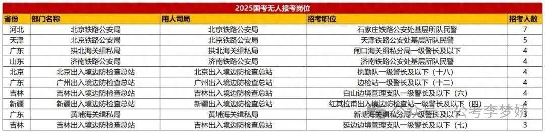 据统计,2025国考中出现了157个“0报考”岗位。例如,北京铁路公安局、济南铁路公安局、新疆出入境边检总站等基层一线民警类岗位,部分招录数高达7人,但最终报名人数为0。