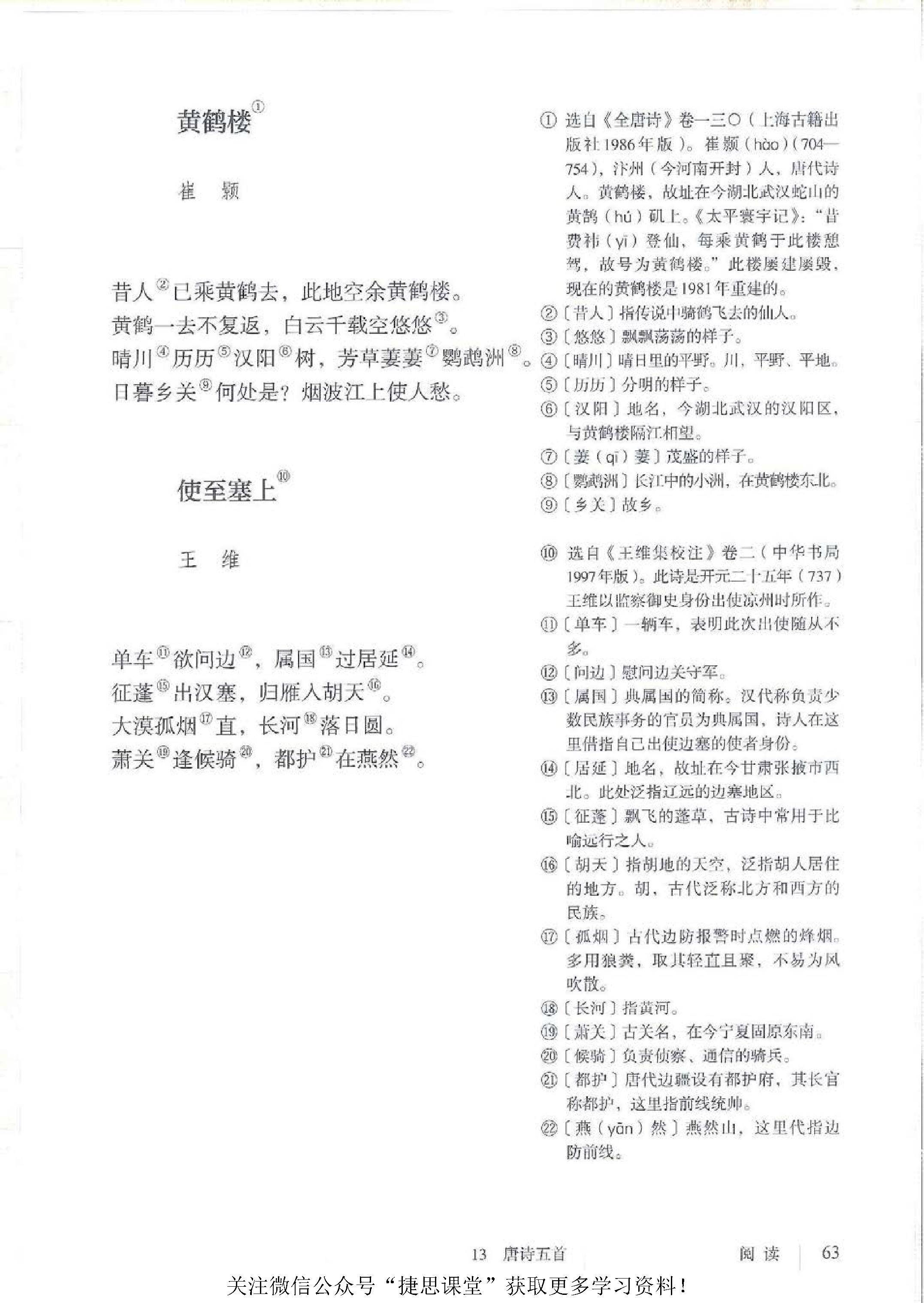 唐诗五首(野望 / 王绩、黄鹤楼 / 崔颢、使至塞上 / 王维、渡荆门送别 / 李白、钱塘湖春行 / 白居易)
