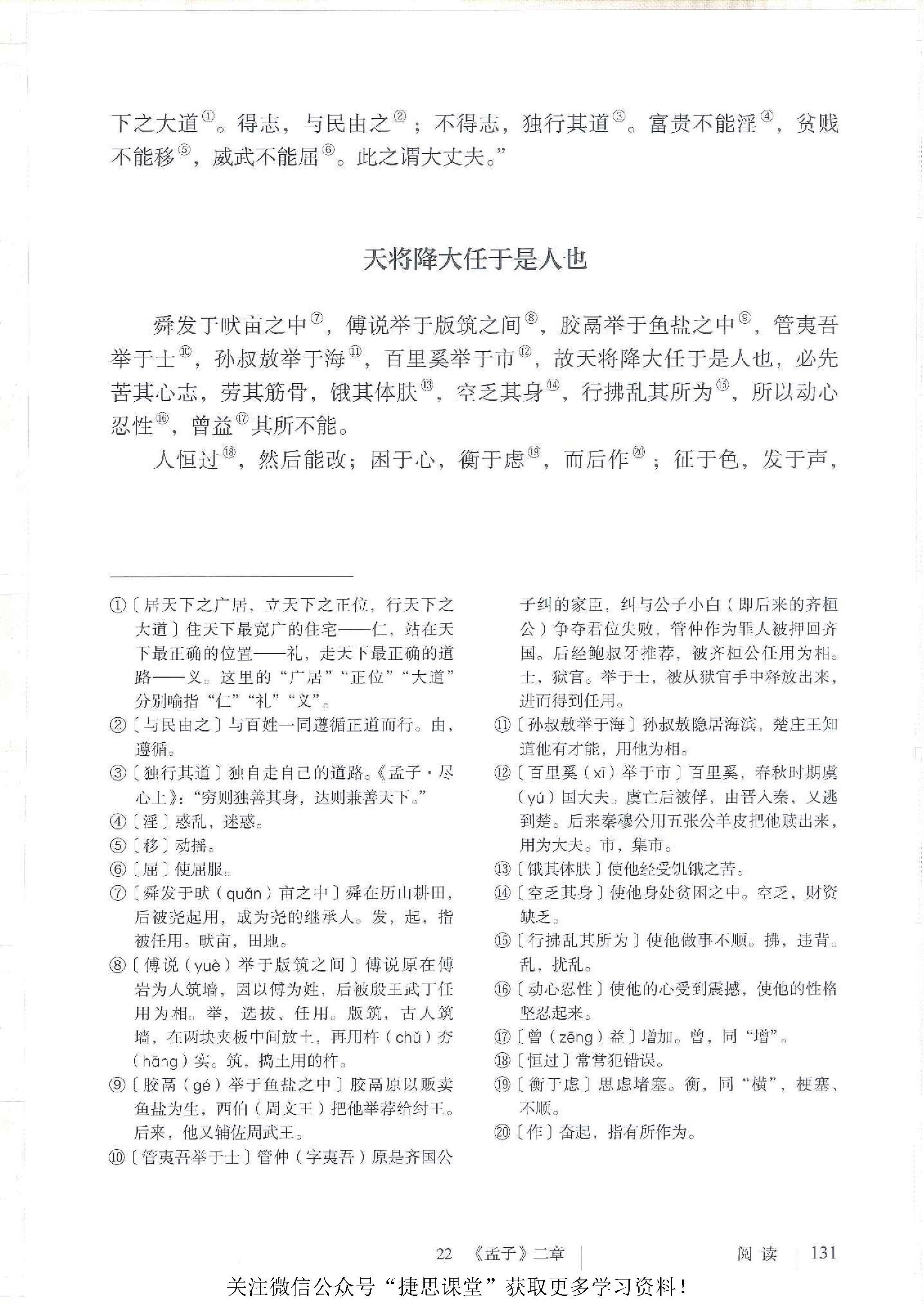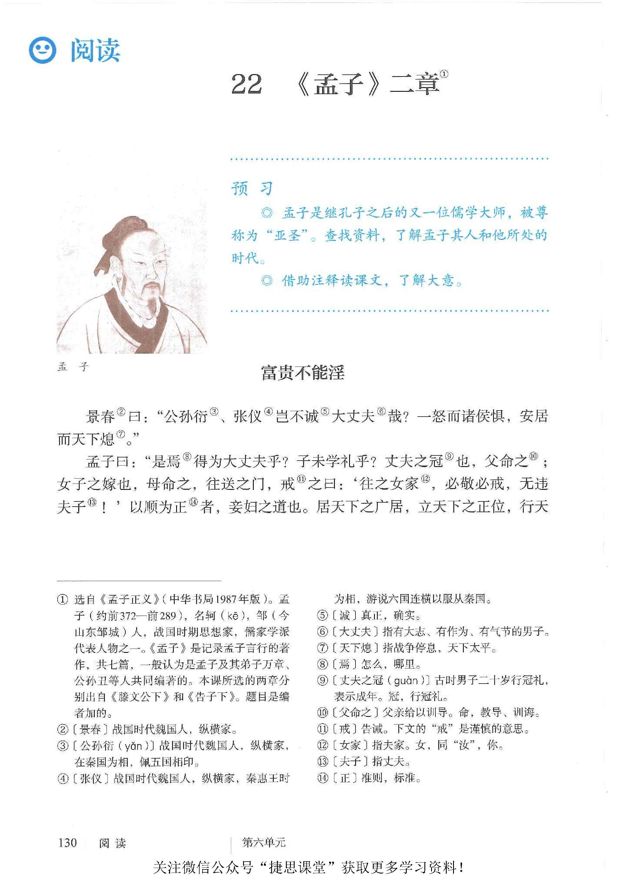 《孟子》三章(得道多助,失道寡助、富贵不能淫、生于忧患,死于安乐)