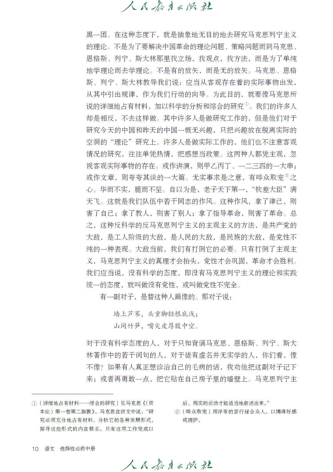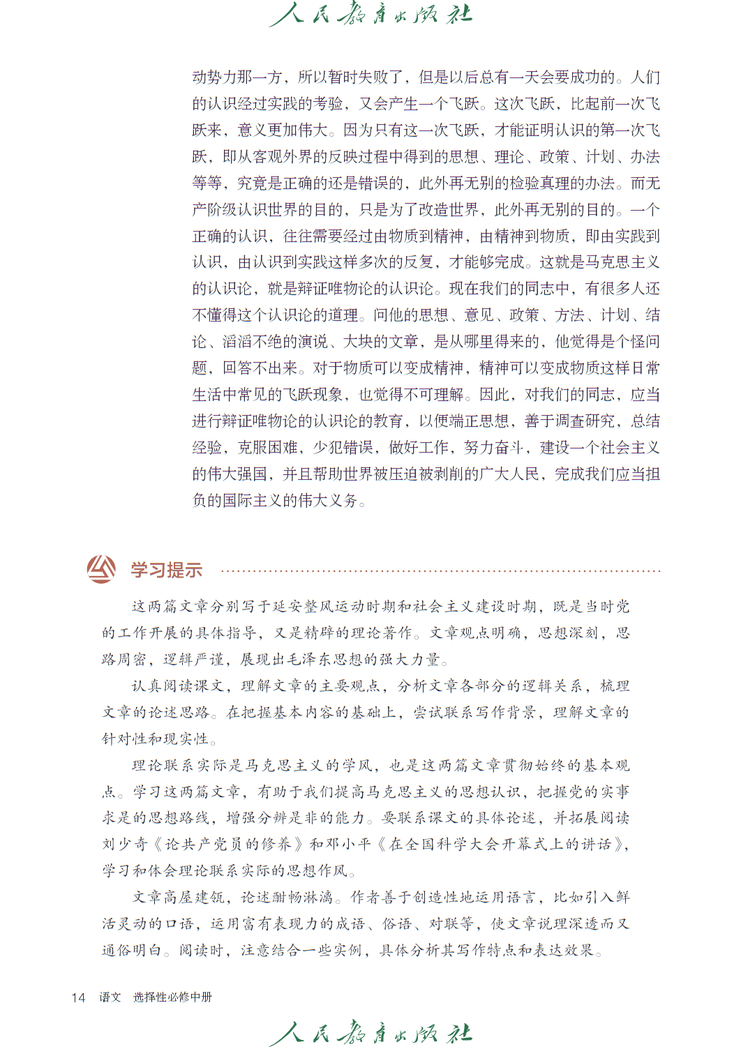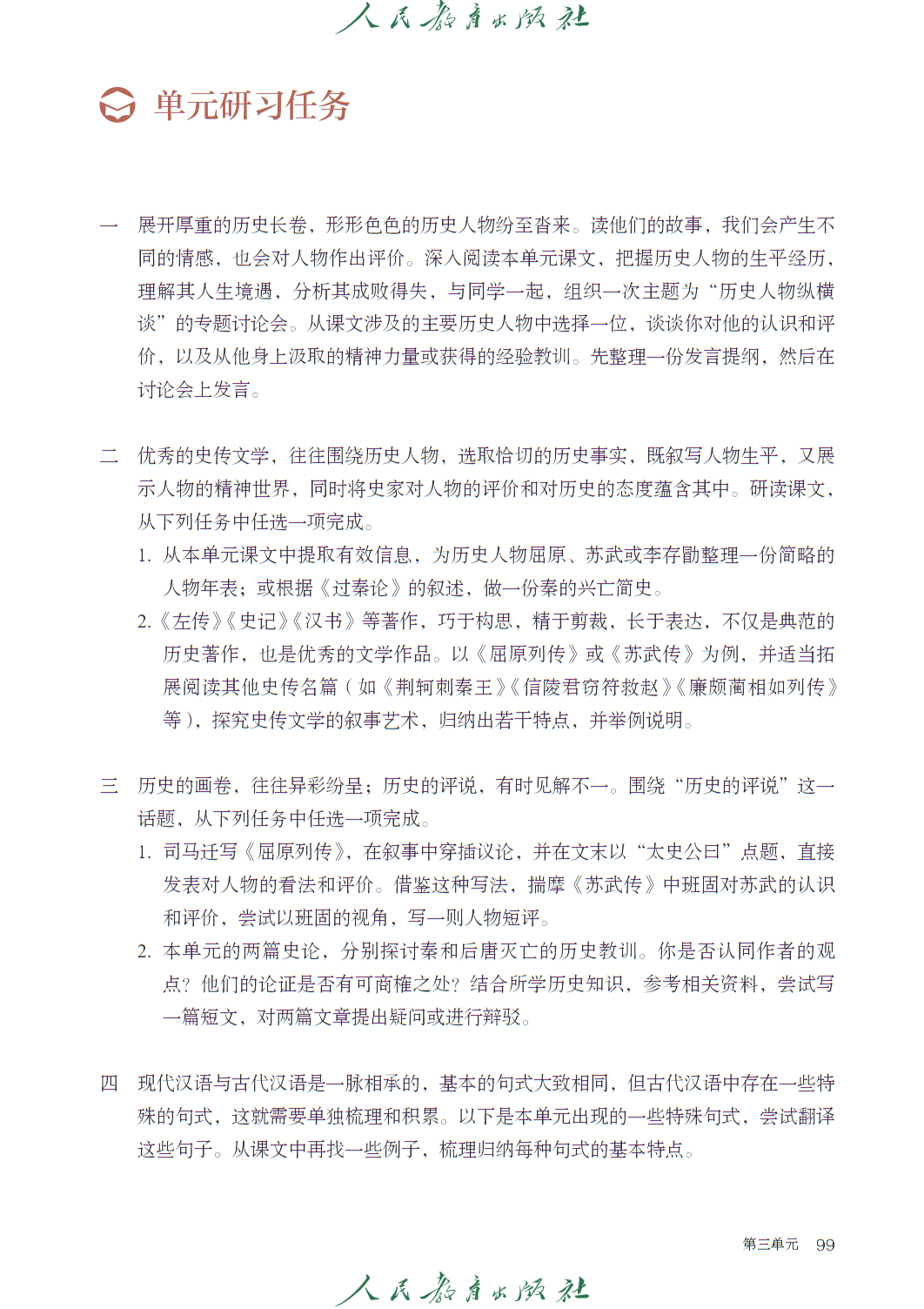 高中语文选修中册人教版电子课本,秉持 “人文主题” 与 “学习任务群” 双线编排理念,聚焦思想传承与思辨能力培育,共设四个单元及 “单元研习任务” 模块,呼应语文核心素养发展要求。