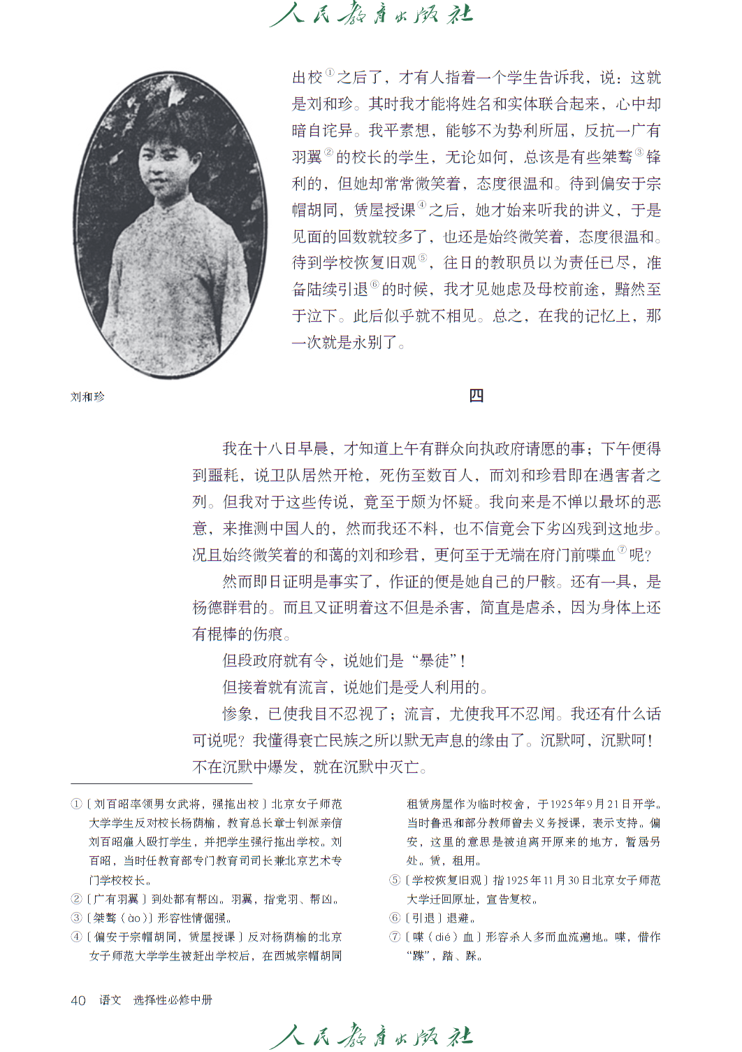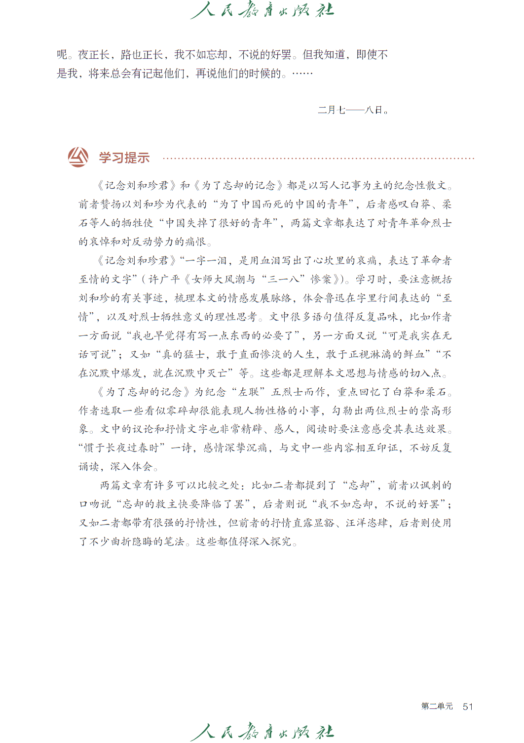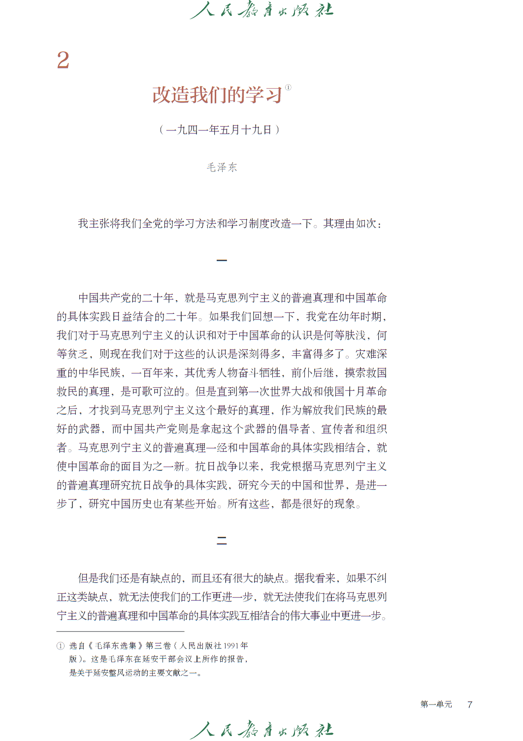 第一单元 “理论的价值” 属 “思辨性阅读与表达” 任务群,收录《实践是检验真理的唯一标准》等文本,引导学生把握理论逻辑,思考思想的现实意义。第二单元 “民族复兴的历史根基”,以《记念刘和珍君》《为了忘却的记念》等篇目,传承革命传统,强化家国情怀。