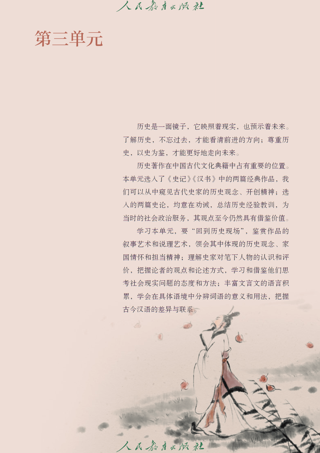 第三单元 “使命与抱负” 汇聚《屈原列传》《苏武传》等史传经典,结合情境创设与任务驱动,探究古人的精神境界与担当。第四单元 “媒介与传播” 聚焦跨媒介阅读,培养信息筛选与整合能力。教材通过读写活动与思维训练,助力学生深化文化认知,提升理性思维与表达素养。