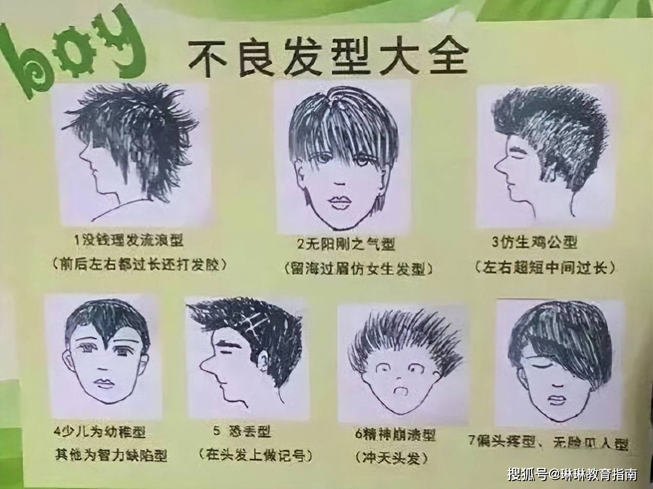 只因这样猎奇的发型在家长眼中就是不伦不类的典型,不仅与美观毫不搭边,关键是也耽误学习,留这样的发型去学校,别说认真学习了,估计连黑板都看不清。