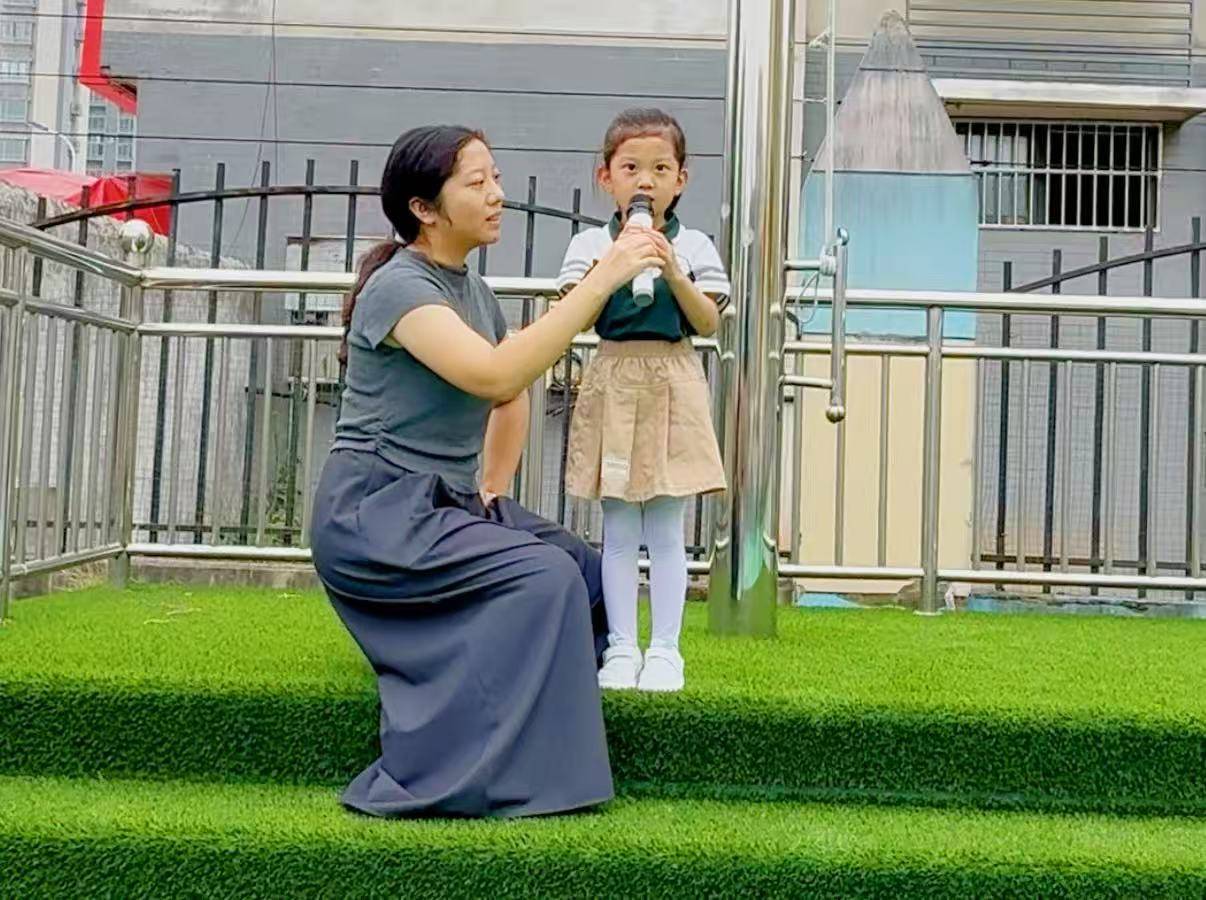 清晨,全体师幼齐聚操场。鲜艳的五星红旗缓缓升起,整个操场沉浸在庄严肃穆的氛围里。升旗仪式结束后,罗淼小朋友登上讲台,“祖国妈妈生日快乐!”“我们要爱护国旗,热爱祖国!”一句句既童真又坚定的话语,传递着孩子们对祖国的热爱与祝福。