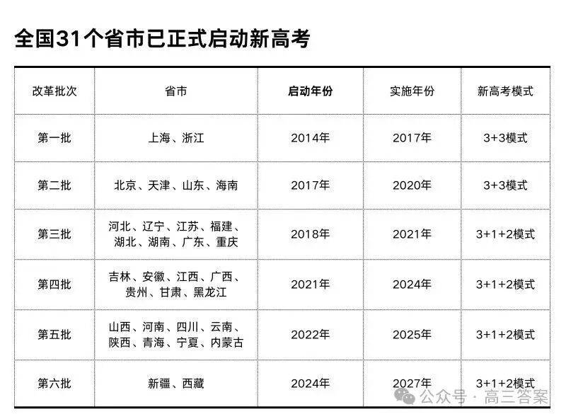 此后几年,高考改革政策逐步从东部地区扩展到中西部地区,分多个批次有序推进。从第三批开始,“3+3”模式被“3+1+2”模式取代,具体实施细则在实践中不断调整和优化。