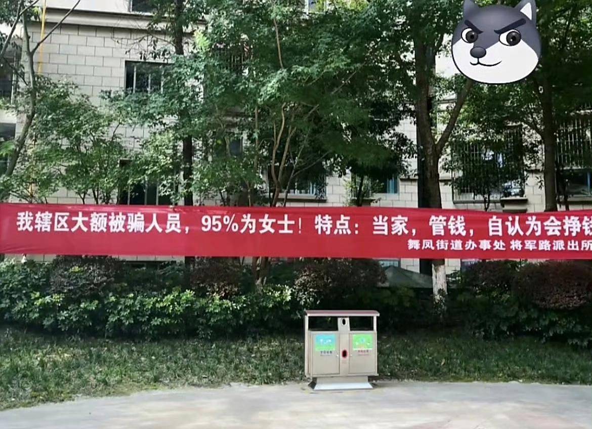 这起事件值得一提的是,多数投资受害者为女性。媒体在报道此事时,亮出一张耐人寻味的画面,某小区的宣传条幅上面写着:我辖区大额被骗人员,95%为女士,特点:当家,管钱,自认为会挣钱。