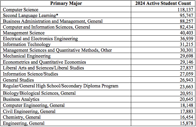 ✅ 专业趋于就业导向,计算机科学稳居第一