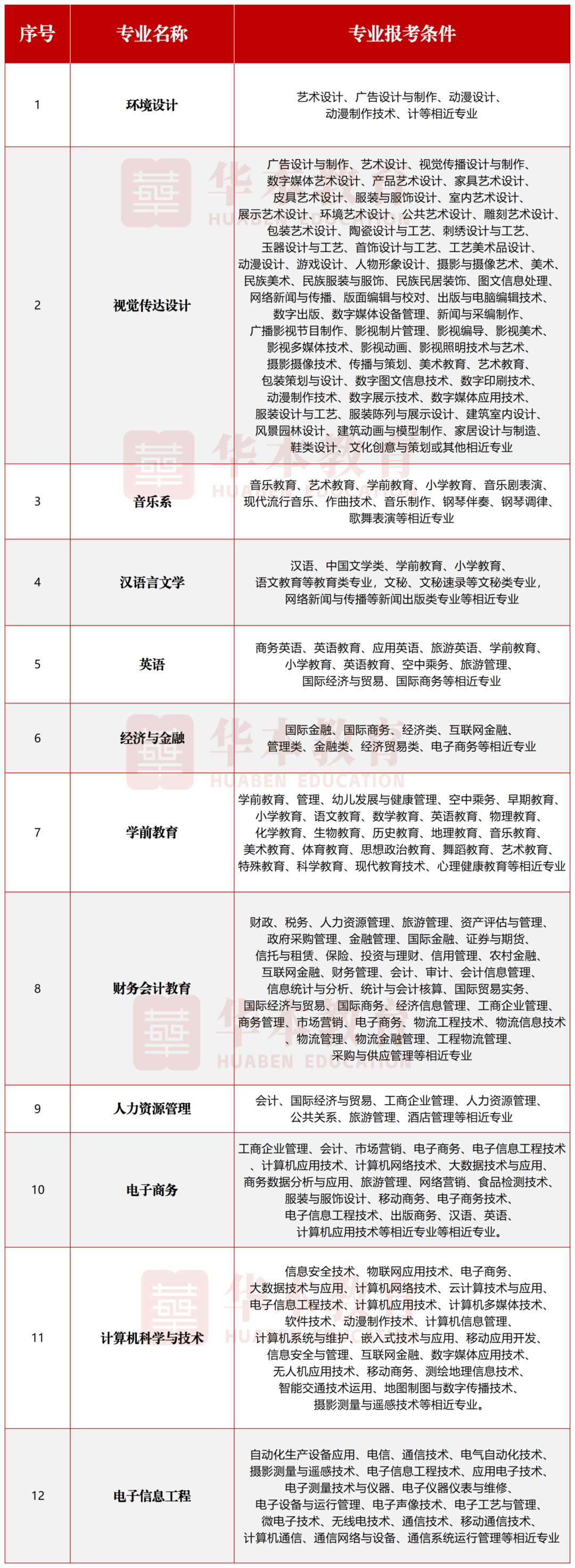 汉口学院2025年共有12个专业招收专升本学生。相比2024年没有变化