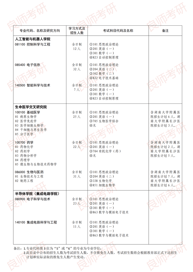 2.初试时间:2025年12月20日至21日。初试方式均为笔试,初试科目详见《湖南大学2026年硕士研究生招生专业目录》。