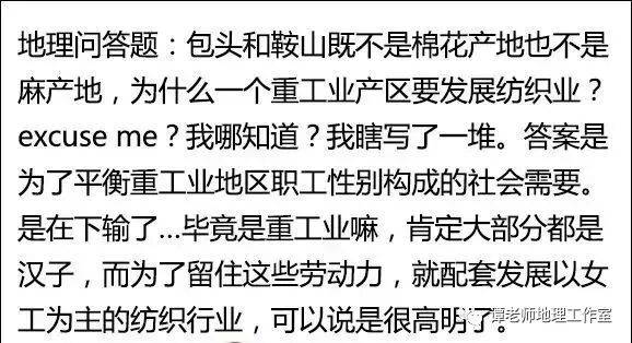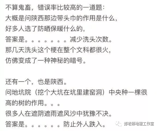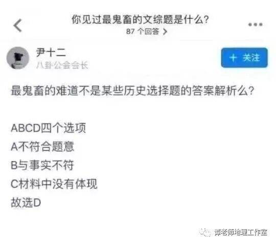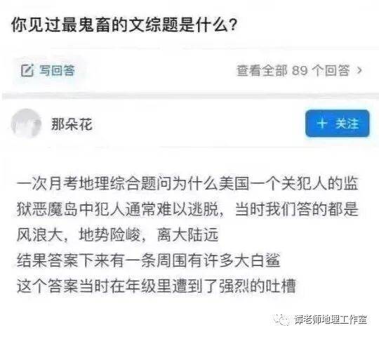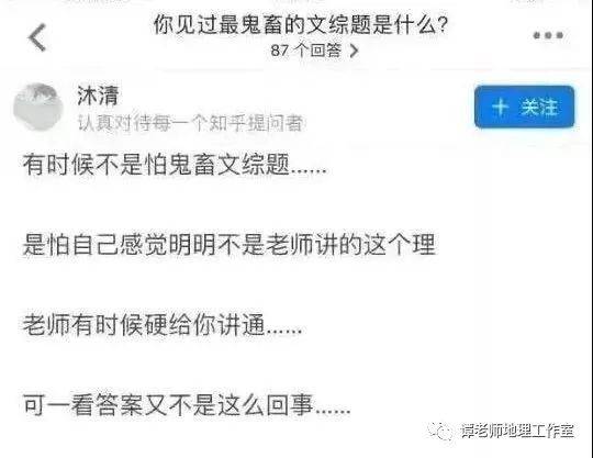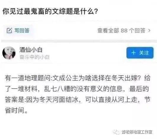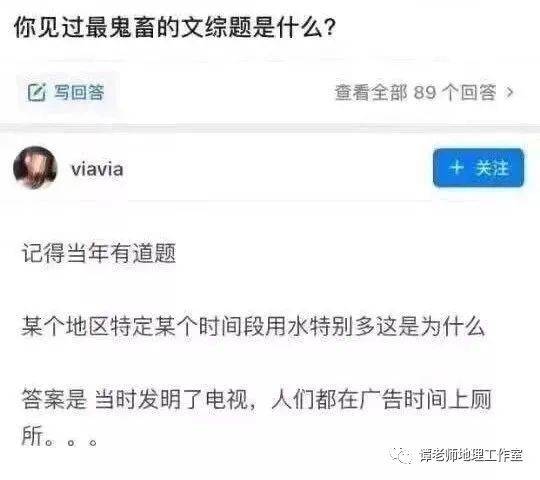 发现这个问题里似乎吐槽地理的居多,我们有位老师说过,其实现在我们考的根本不是地理,那为什么还叫地理呢?因为它既不是政治也不是历史,所以就只能叫地理啦。。