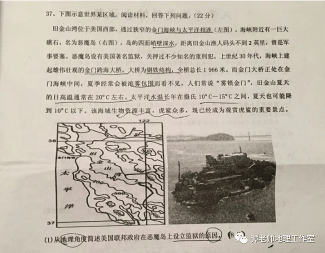 一次月考地理综合题问为什么美国一个关犯人的监狱恶魔岛中犯人通常难以逃脱,当时我们答的都是风浪大,地势险峻,离大陆远结果答案下来有一条周围有许多大白鲨这个答案当时在年级里遭到了强烈的吐槽