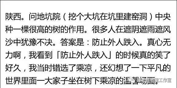 第二道真心无力,我看到“防止外人跌入”的时候真的笑了好久,最后打脸。。我错选了乘凉,还幻想了一下平凡的世界里面一大家子坐在树下乘凉的温馨场面。。。