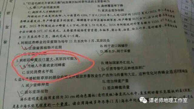 一次文综周测。阿根廷大量出口优质蜂蜜,请问原因是什么?好多人选择当地人消费不起云云....考完后老师对答案居然是当地人不爱吃蜂蜜!?不爱吃搞这些幺蛾子?