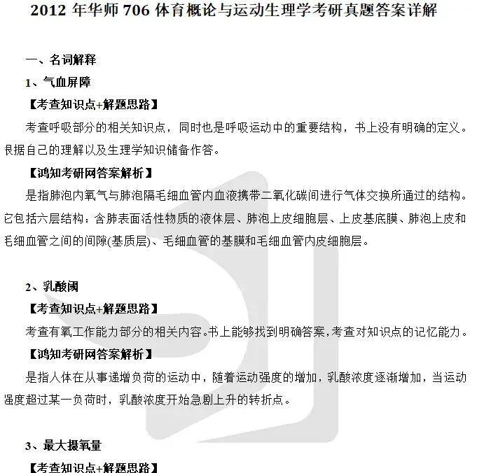 2012年华师706体育概论与运动生理学考研真题答案详解