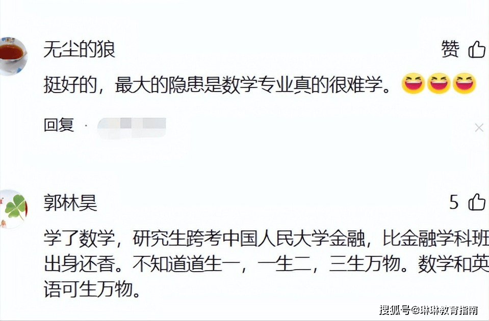 综合来看,这位考生和家长不该感到失望,而应该庆幸自己“捡到宝”了,这种因祸得福的经历也是比较难得的,而他们当下的焦虑也是源于对数学专业的不了解,既来之则安之的道理想必大家都懂,既然已经被数学专业录取了,尽早了解这个专业、做出学习和发展的个人规划才是明智之举。
