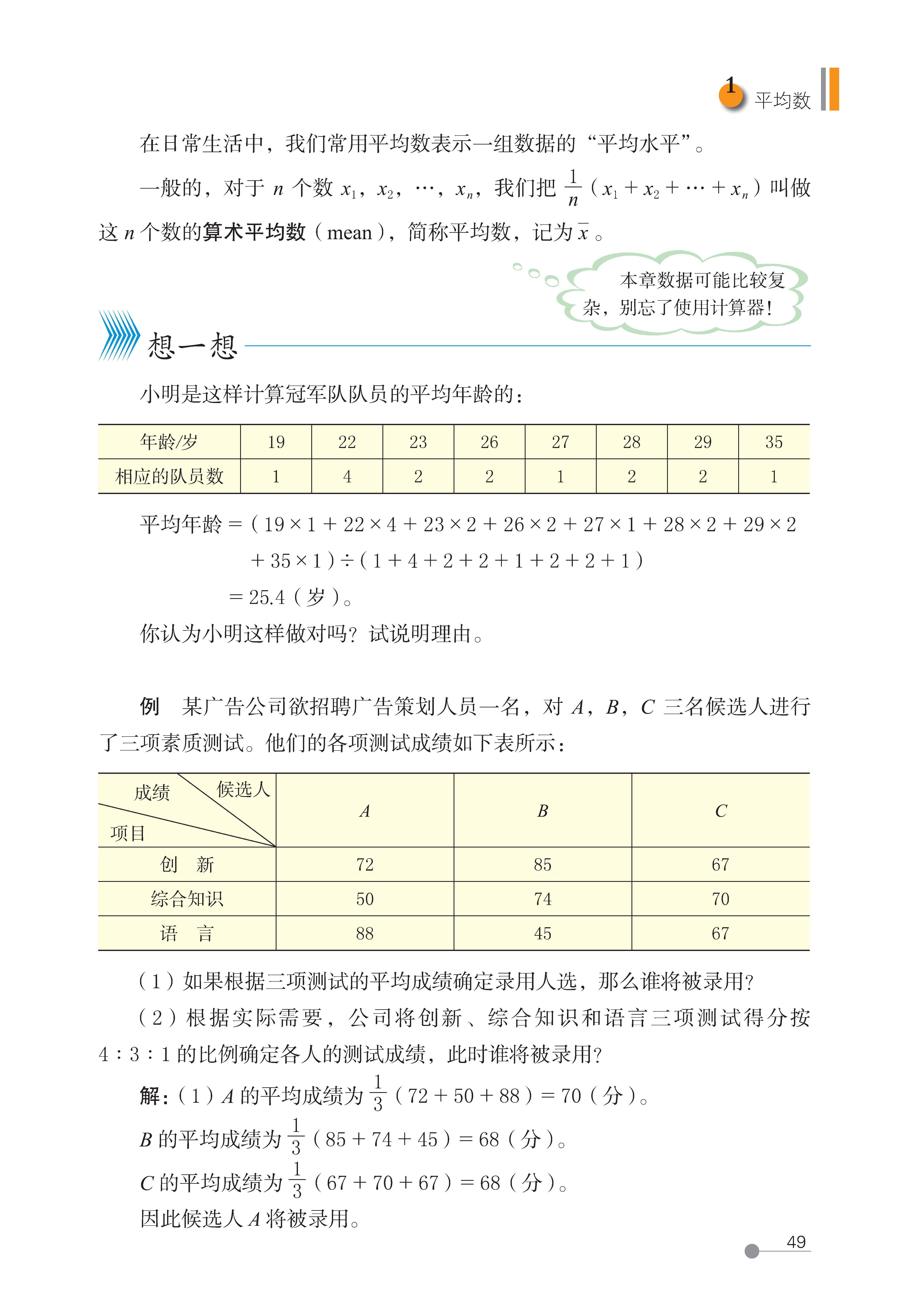 1 平均数