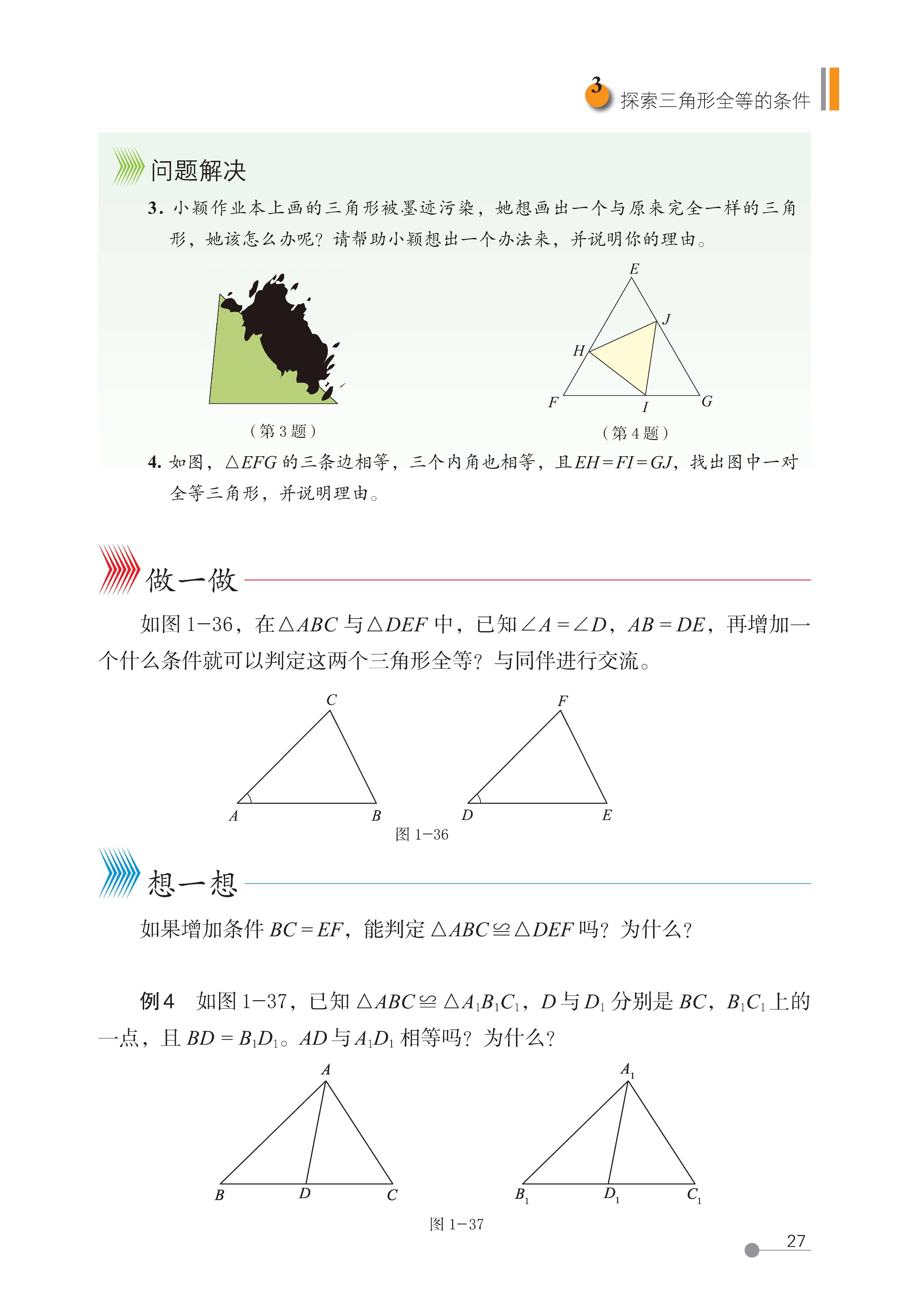 三、第 3 节:探索三角形全等的条件(重中之重)