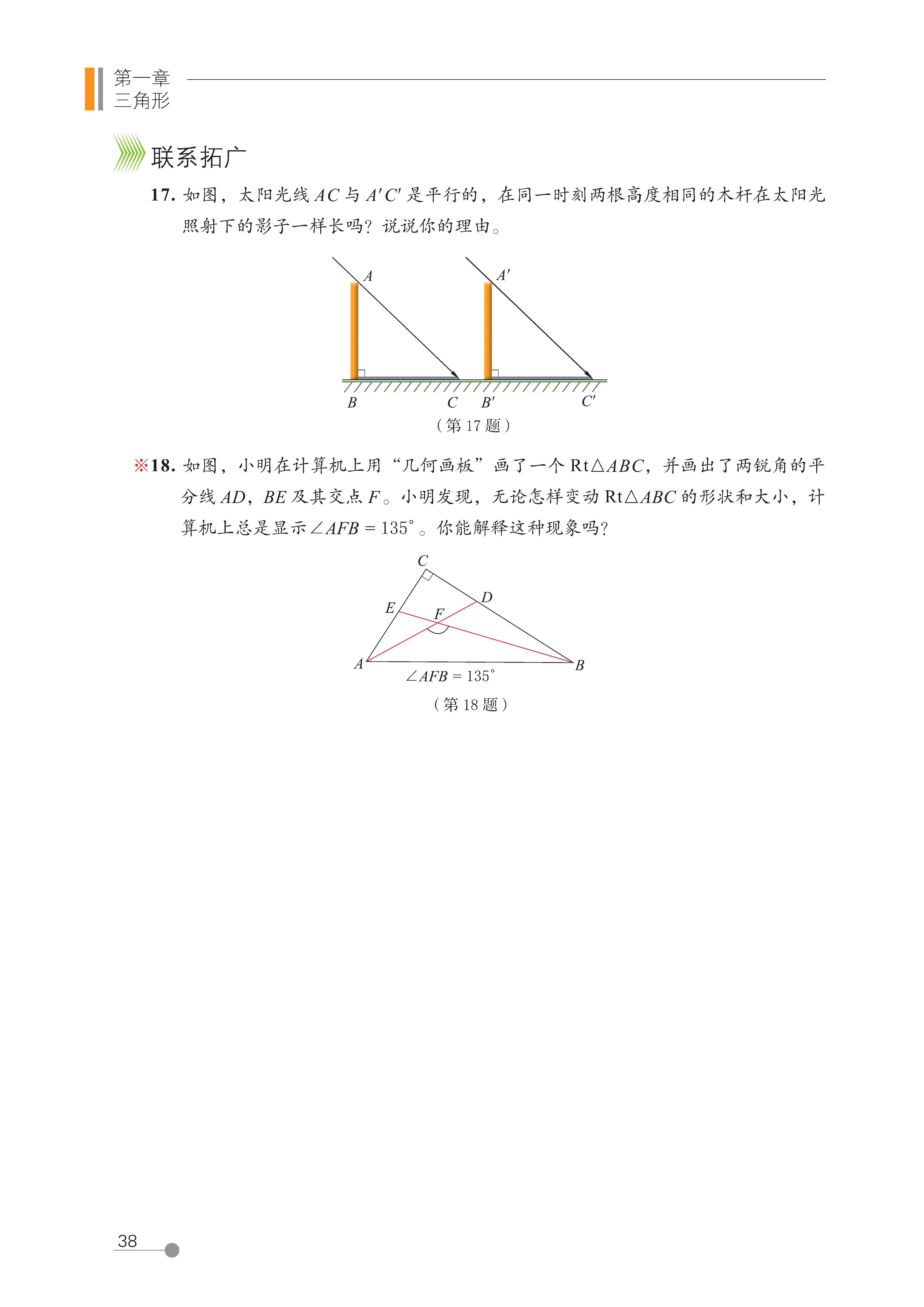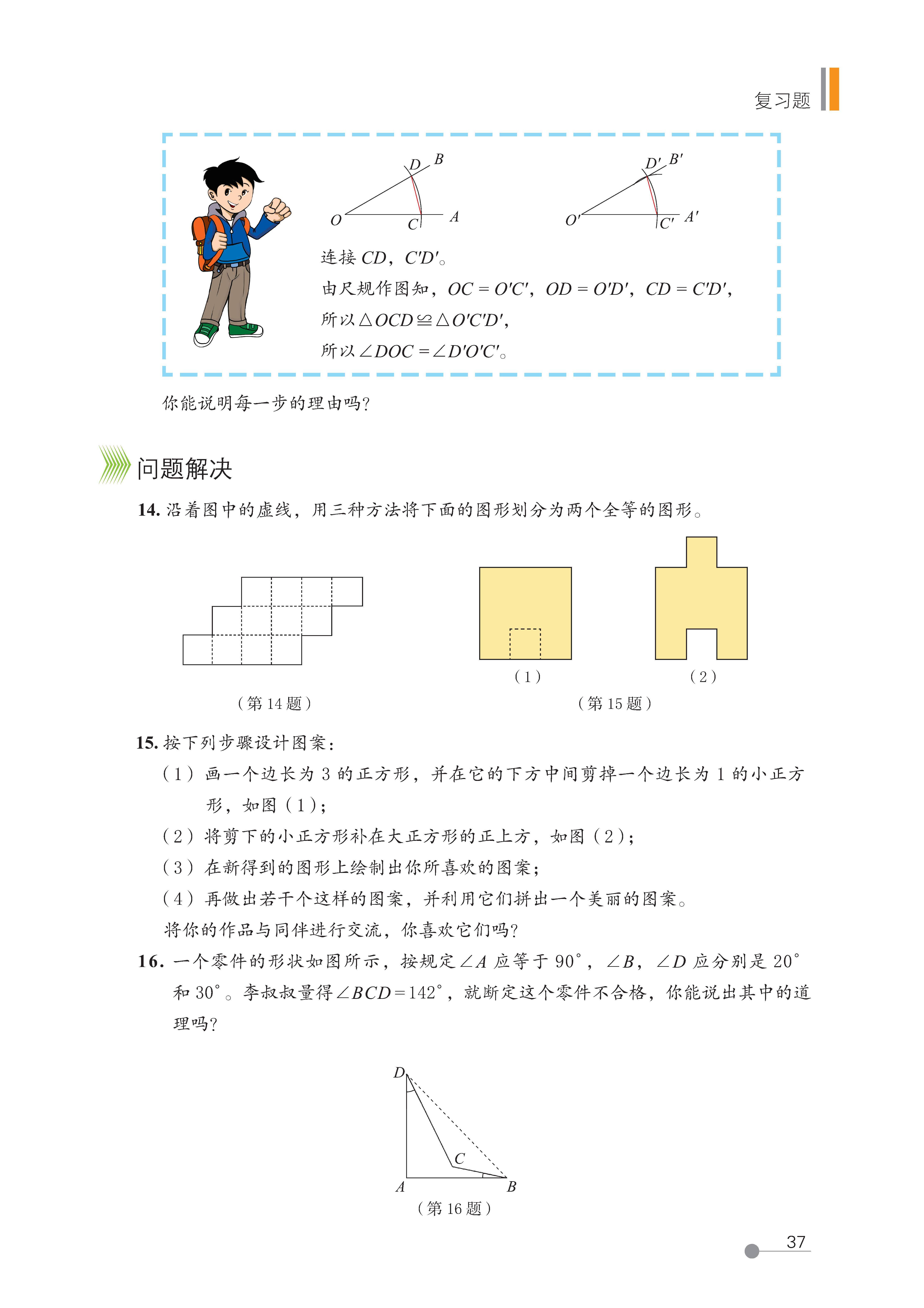 该部分是全章核心,需熟练掌握4 种判定定理,明确 “满足哪些条件可证明两个三角形全等”,同时注意 “易错的假判定”(如 SSA、AAA 不可用)。