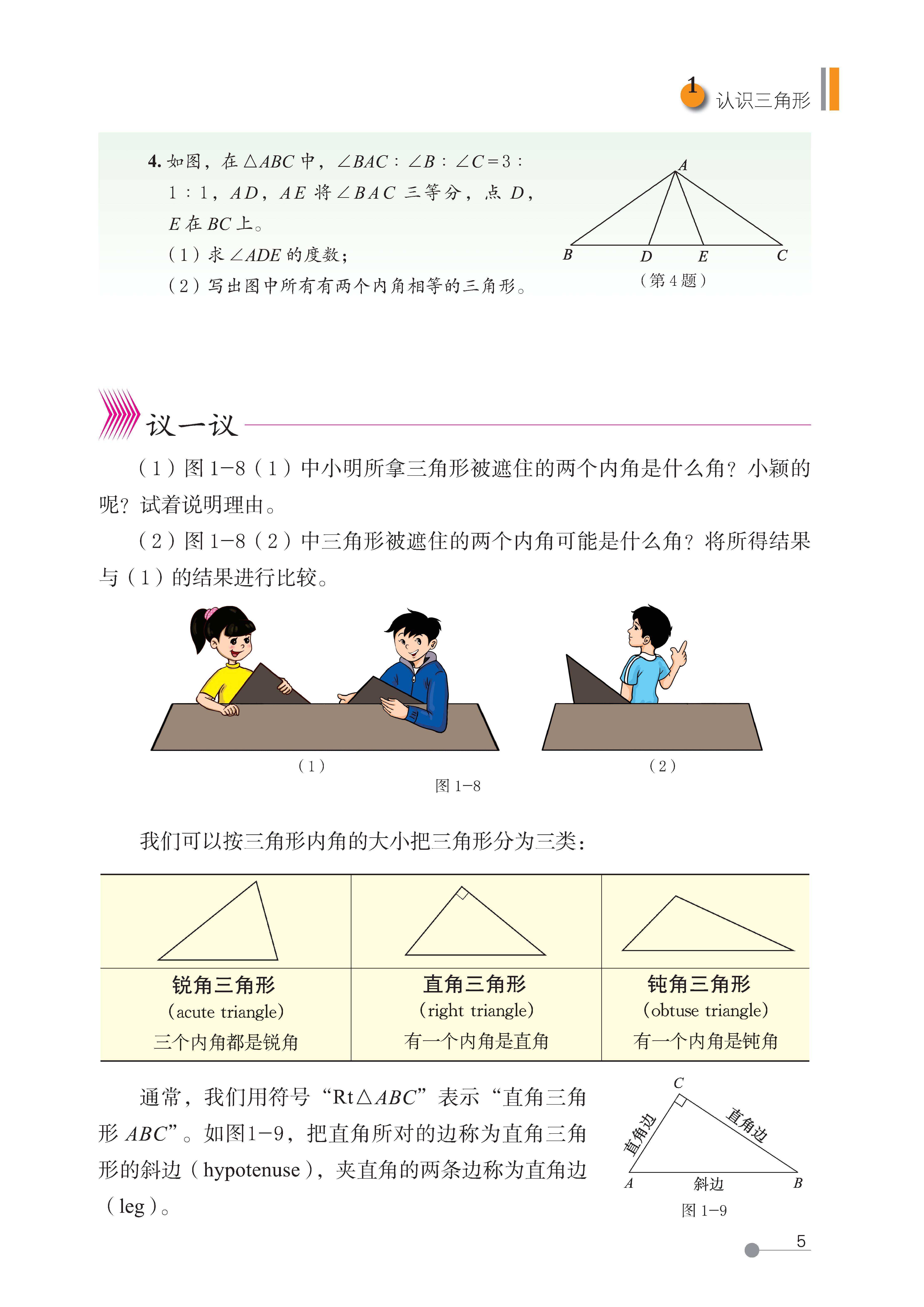 直角三角形 有一个内角是直角(等于 90°)的三角形(直角所对的边叫 “斜边”,另两条边叫 “直角边”)