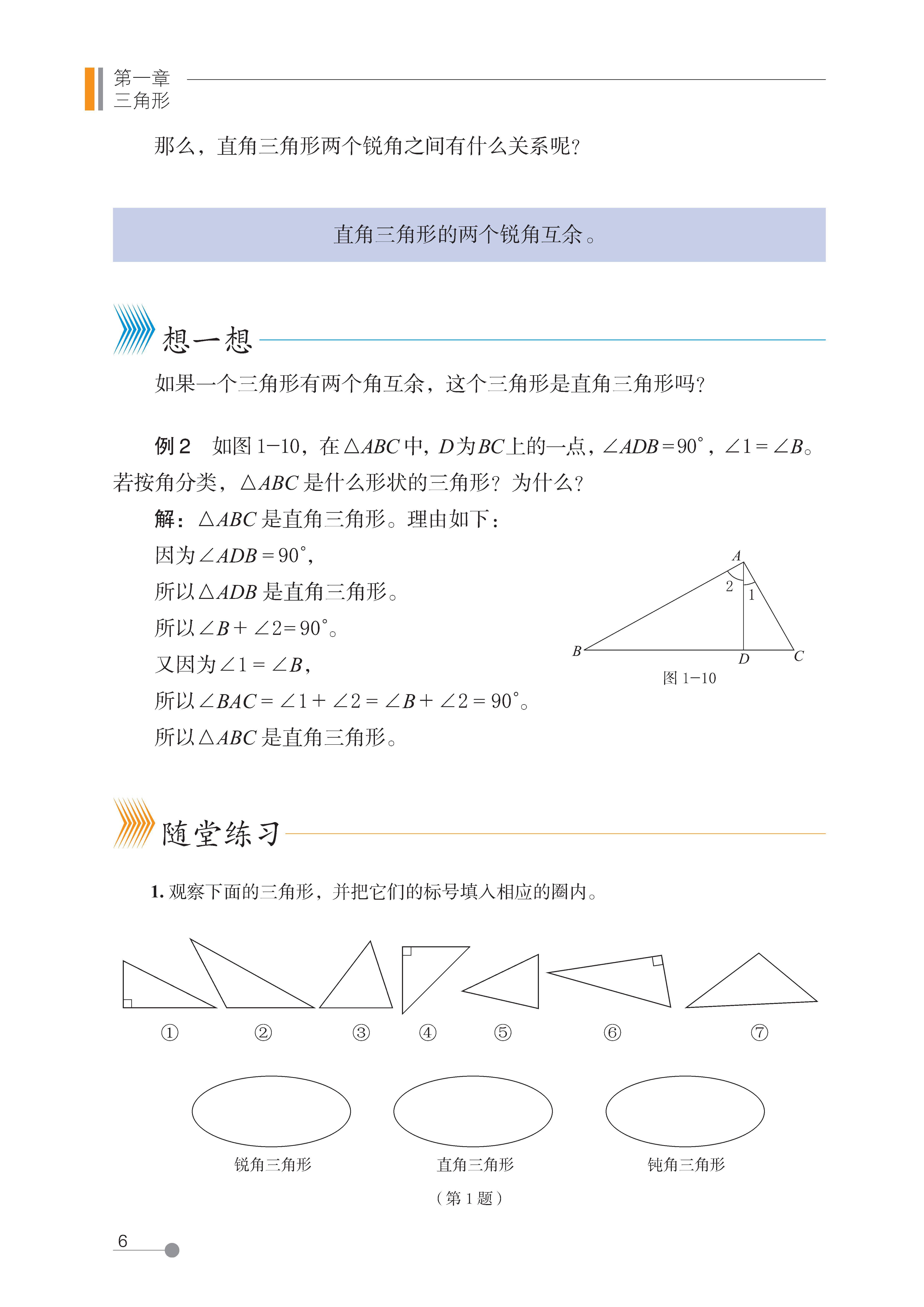按角分类 锐角三角形 三个内角都是锐角(小于 90°)的三角形