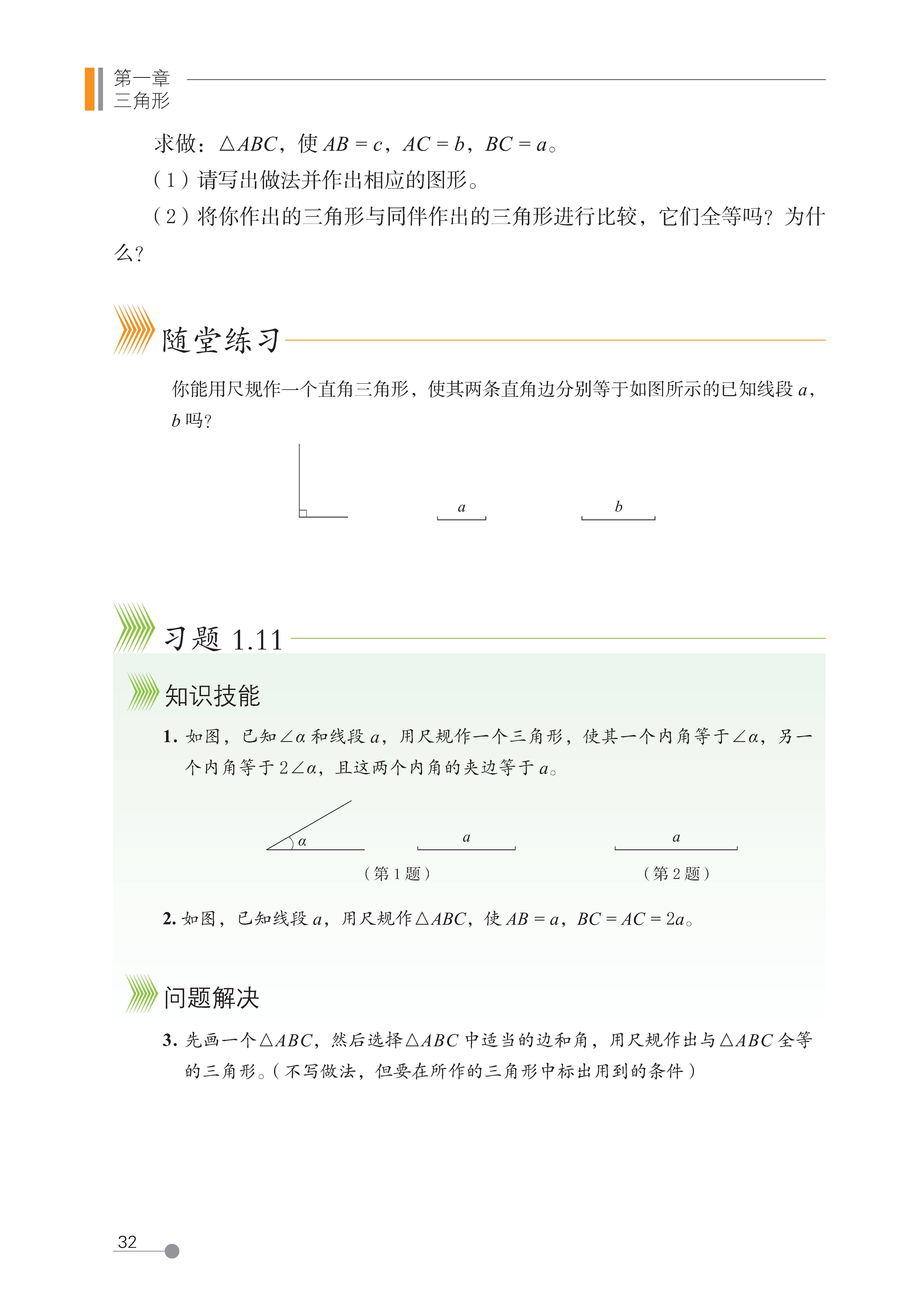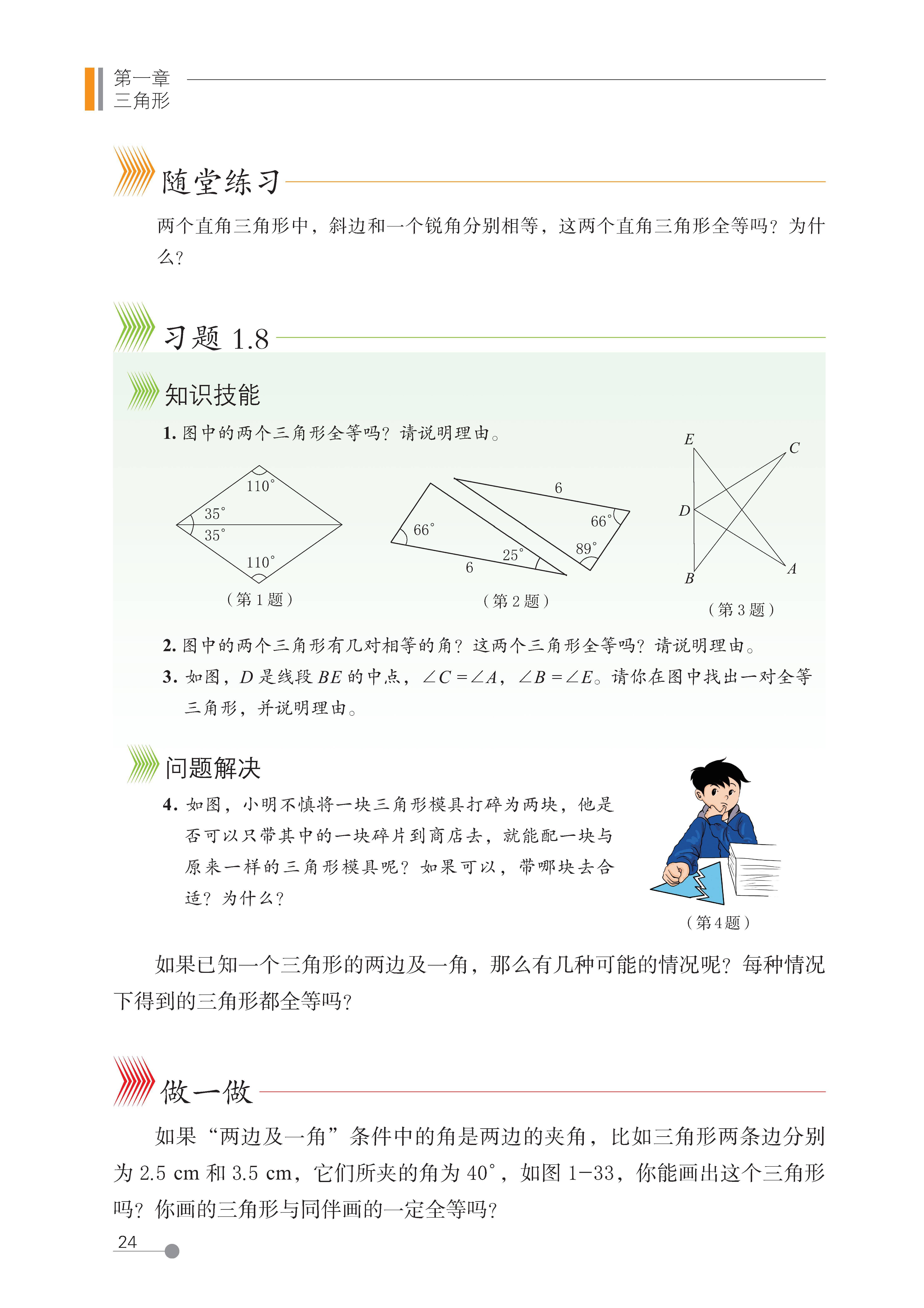 三、第 3 节:探索三角形全等的条件(重中之重)