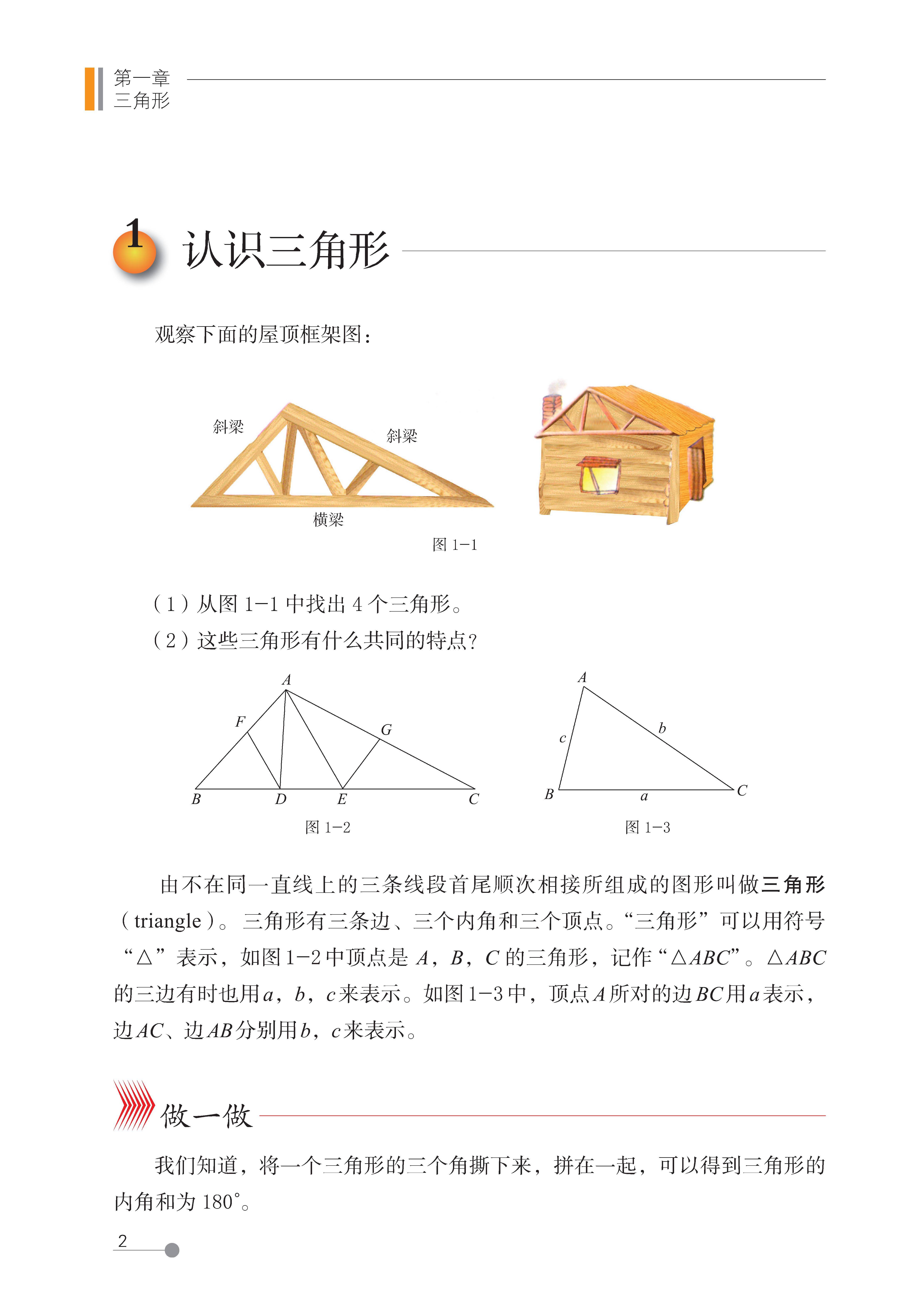 表示方法:用符号 “△” 表示,如顶点为 A、B、C 的三角形,记作 “△ABC”,读作 “三角形 ABC”。
