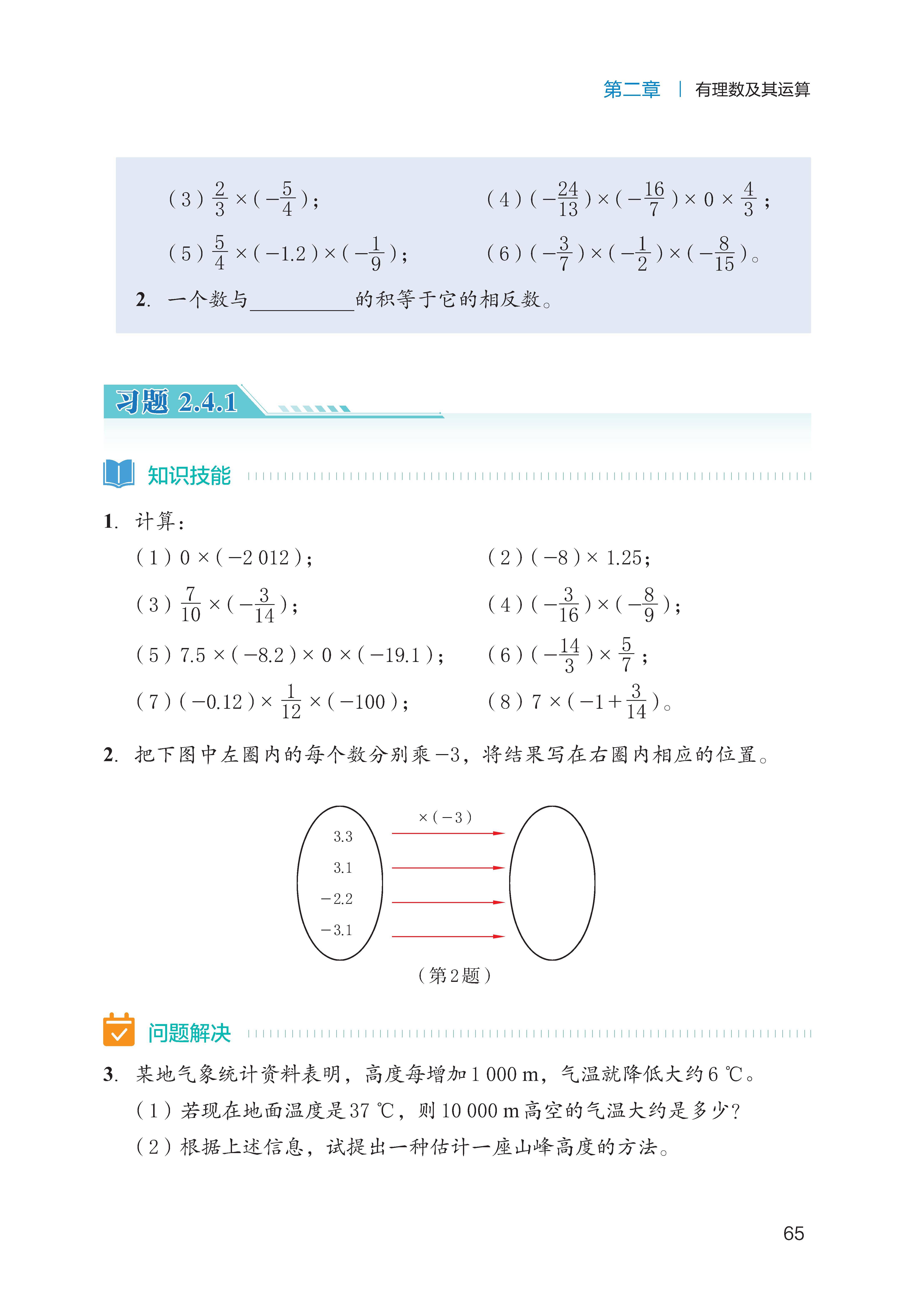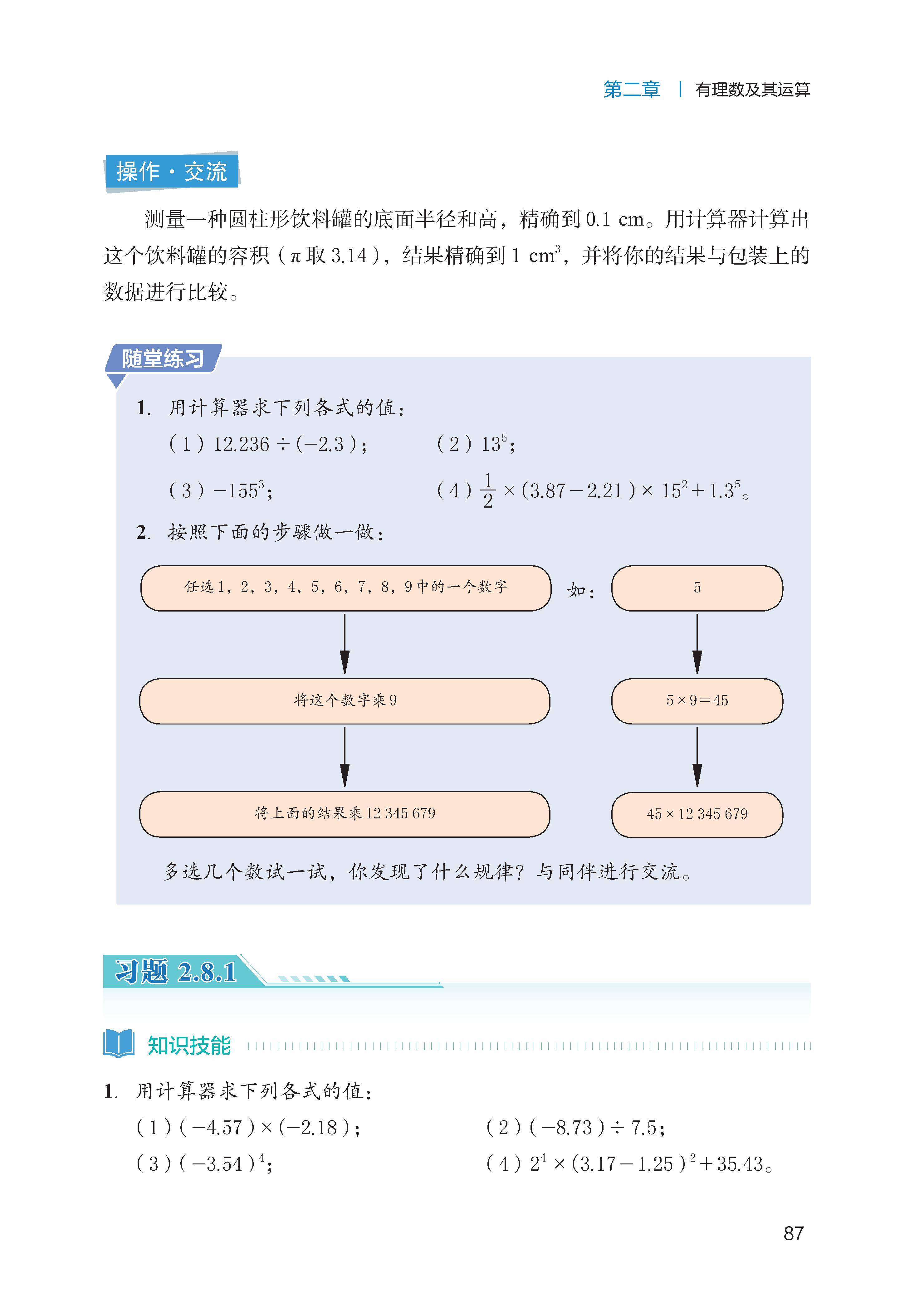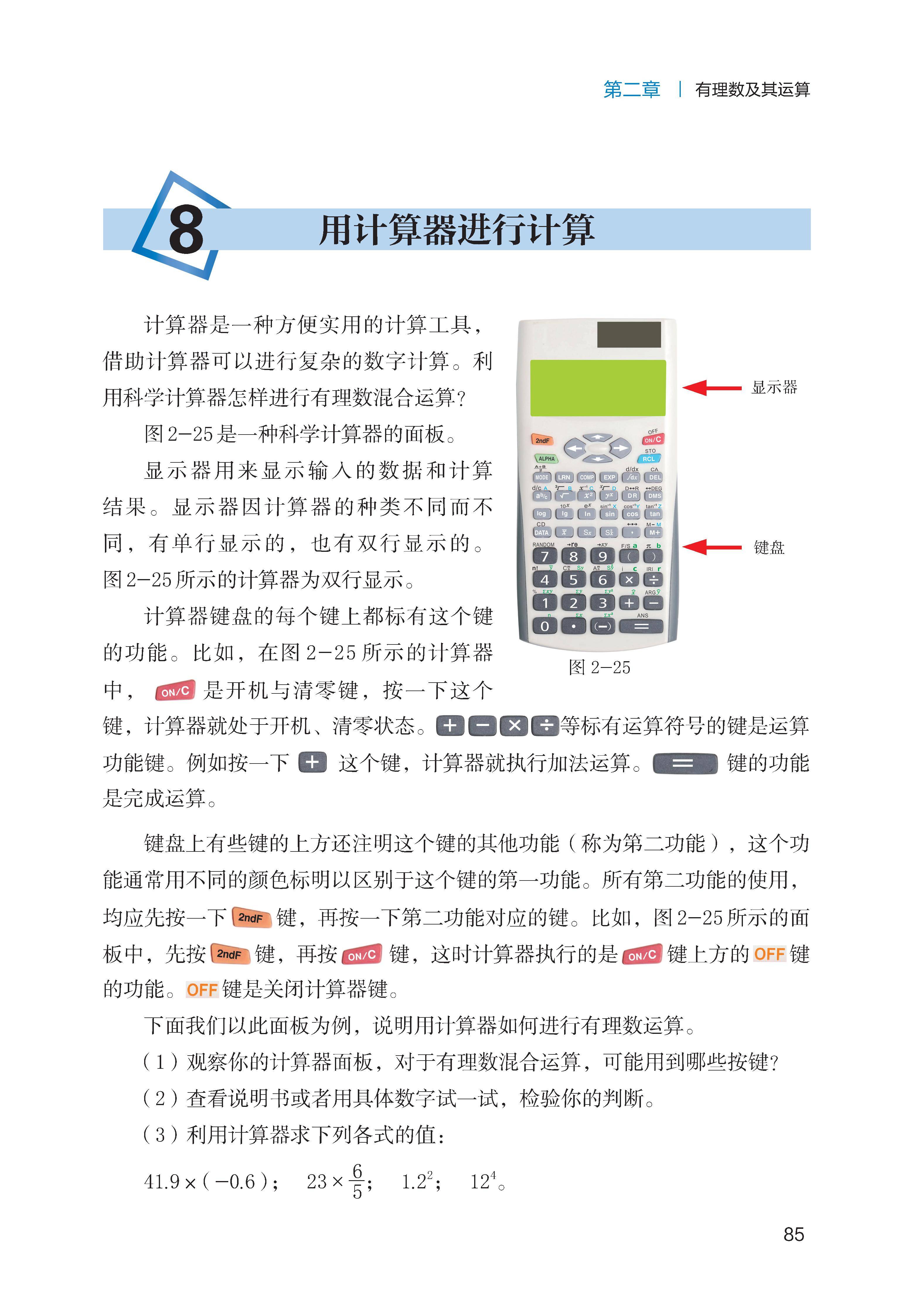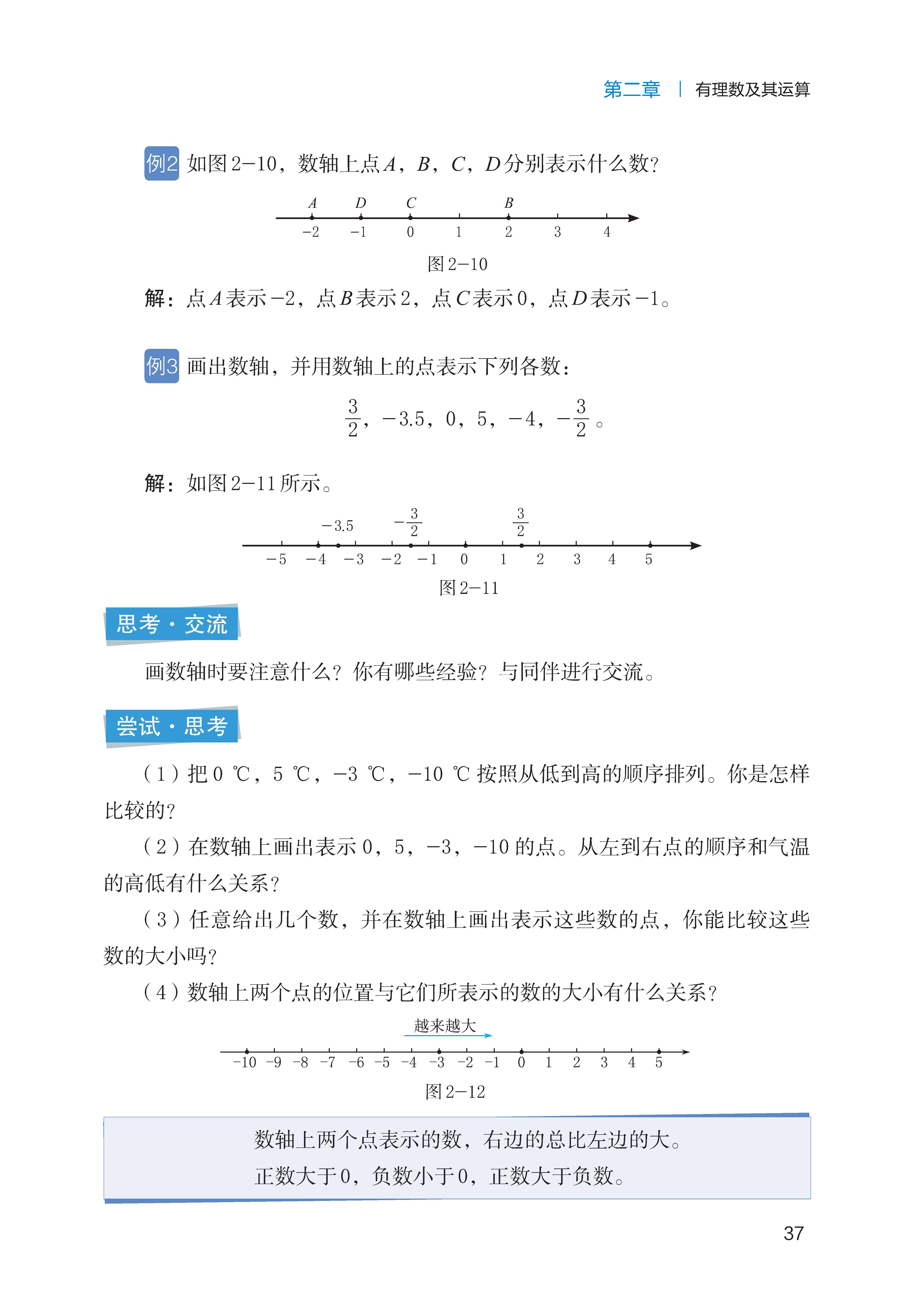 内容概述:引入负数概念,将数系扩充到有理数,涵盖有理数的分类、数轴、相反数、绝对值等概念。重点讲解有理数的四则运算规则,包括加法、减法、乘法、除法,以及乘方运算和混合运算,还涉及近似数和用计算器进行运算的内容。