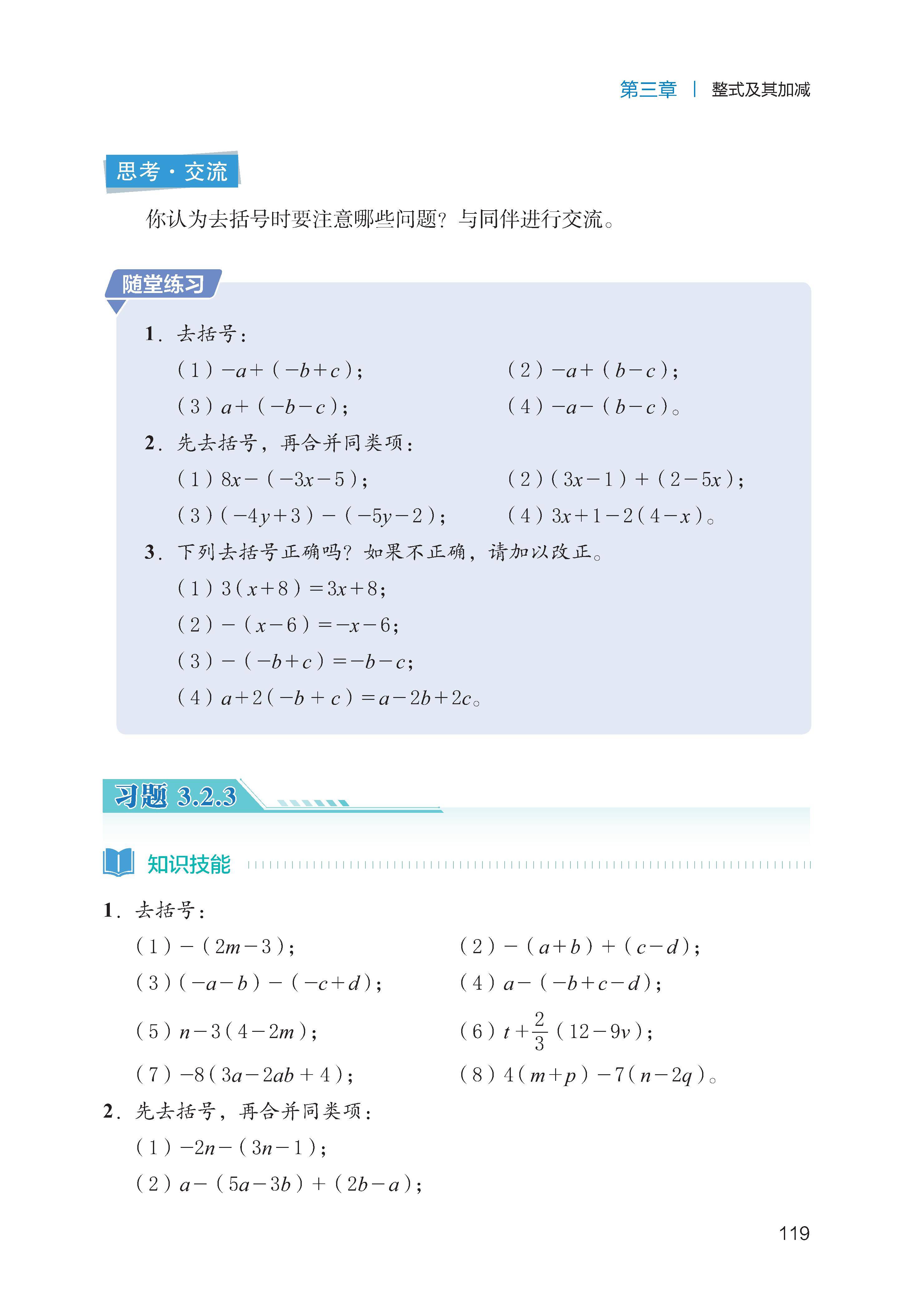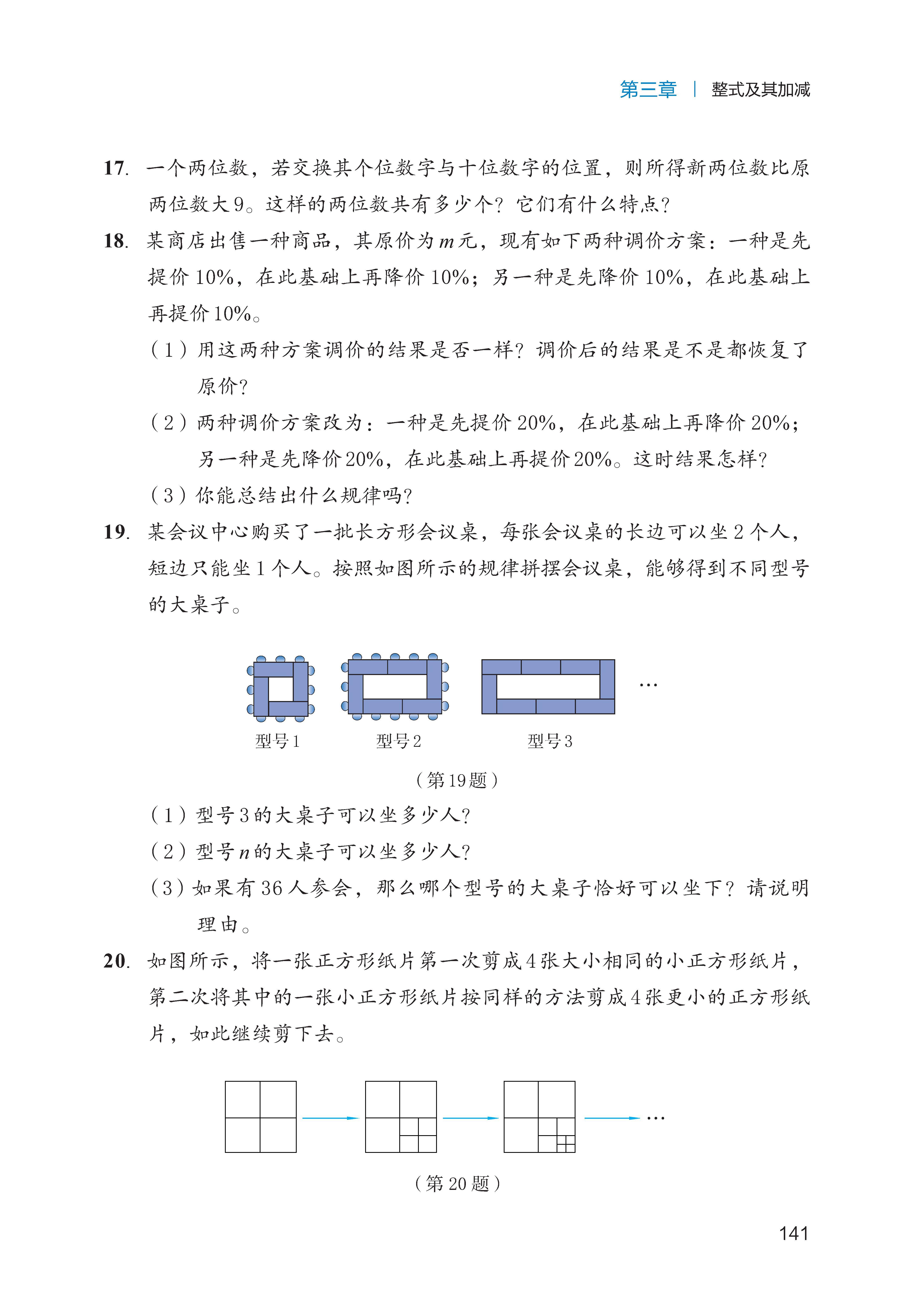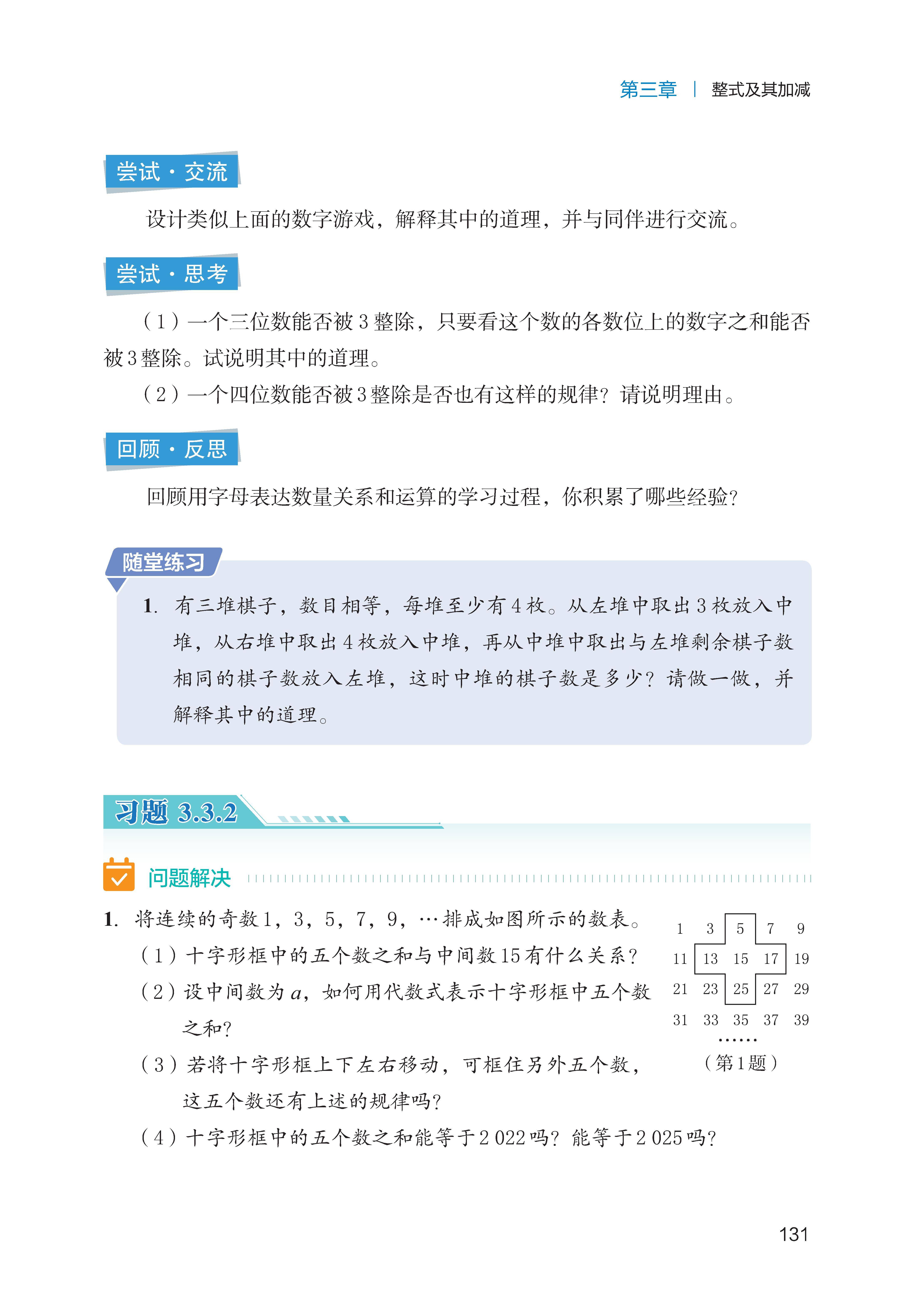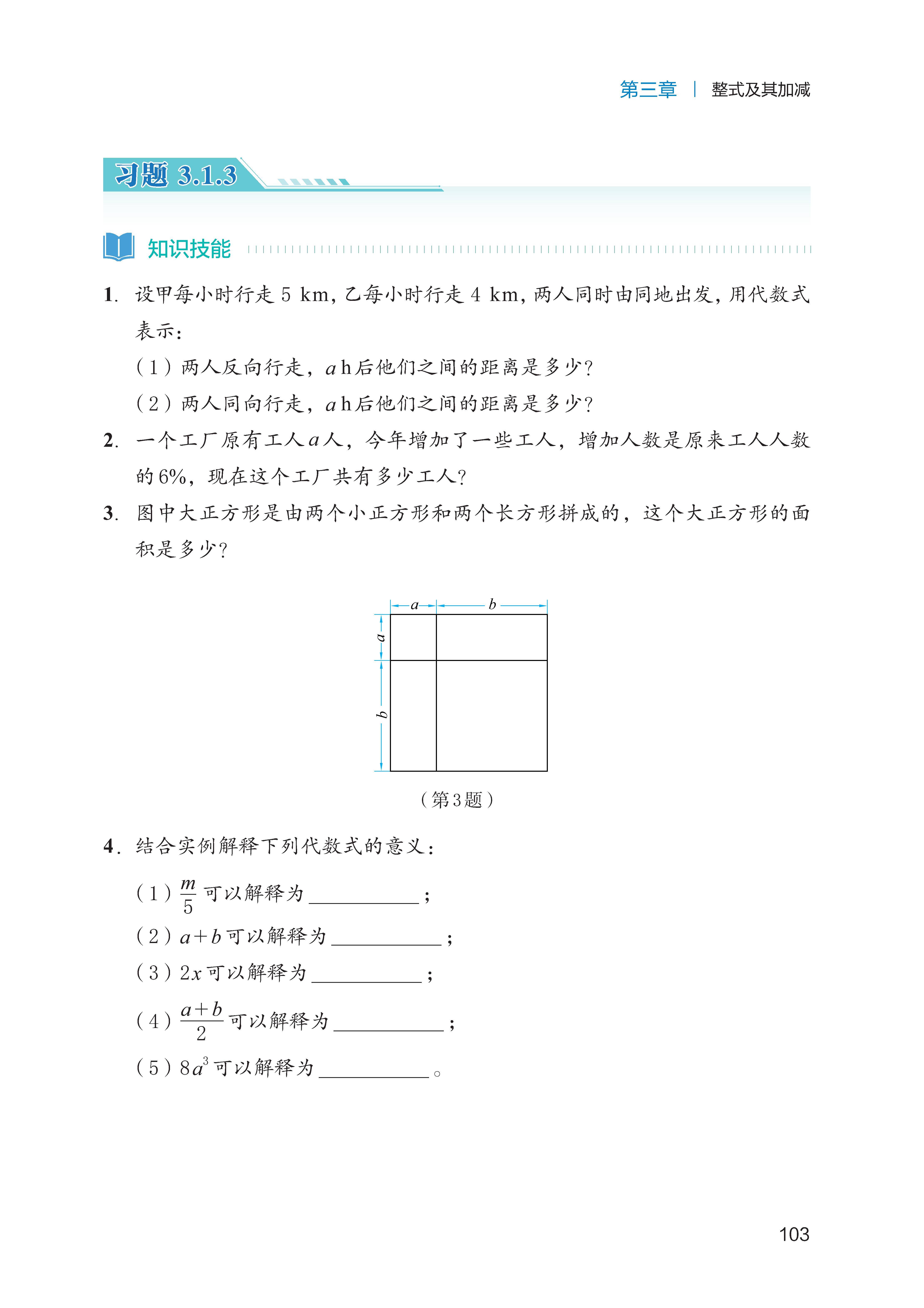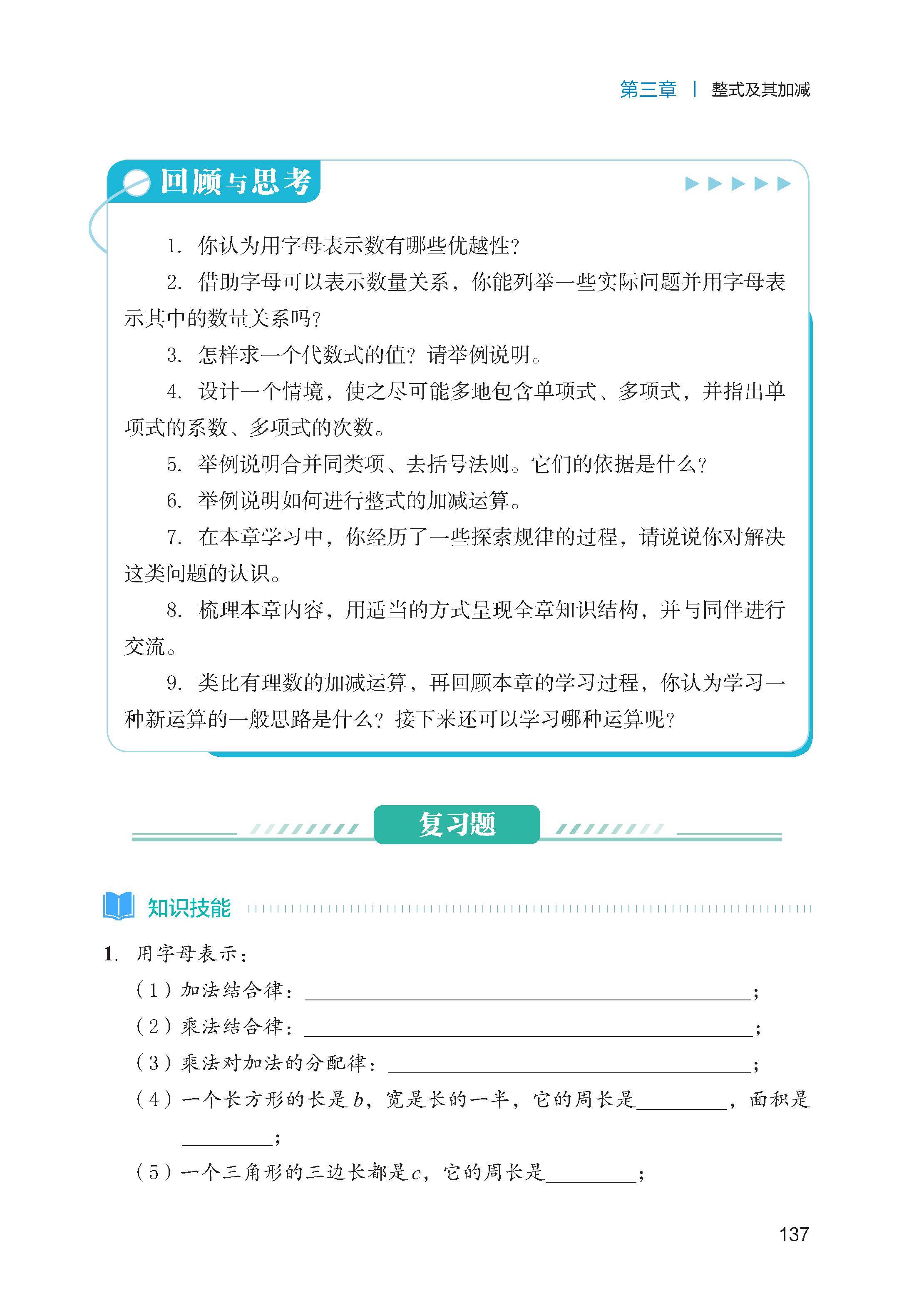 作用与意义:进一步培养学生的抽象思维和符号意识,使学生能够用整式来表示和解决更复杂的数学问题,为后续学习一元一次方程和其他代数知识做好准备。