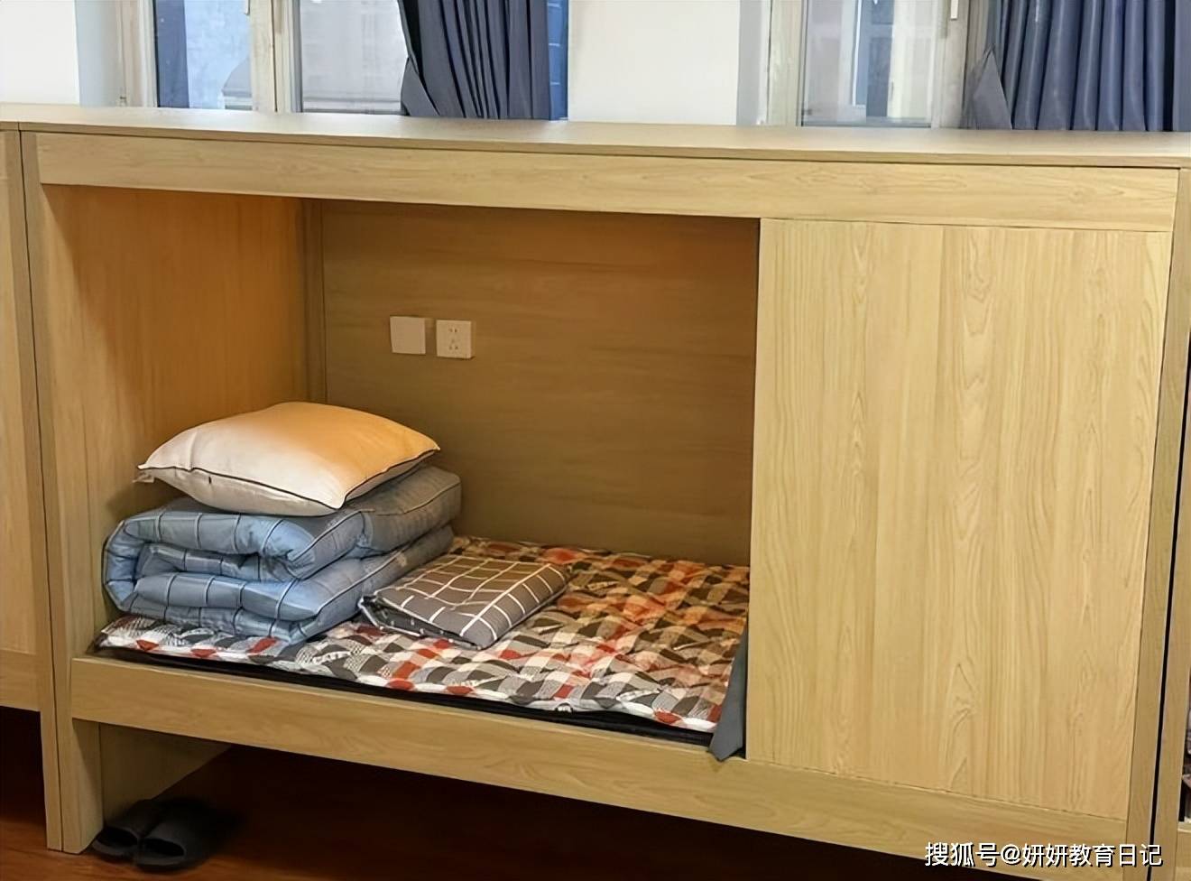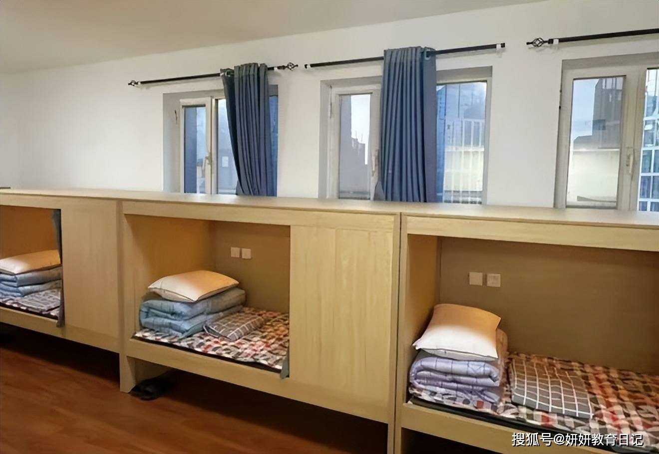 只见高高的床板把学生的小床直接围了起来,看起来怎么说呢?让一些同学立马就想到了自己百年之后会住的那个地方。这何尝又不是一种"棺材宿舍"呢?